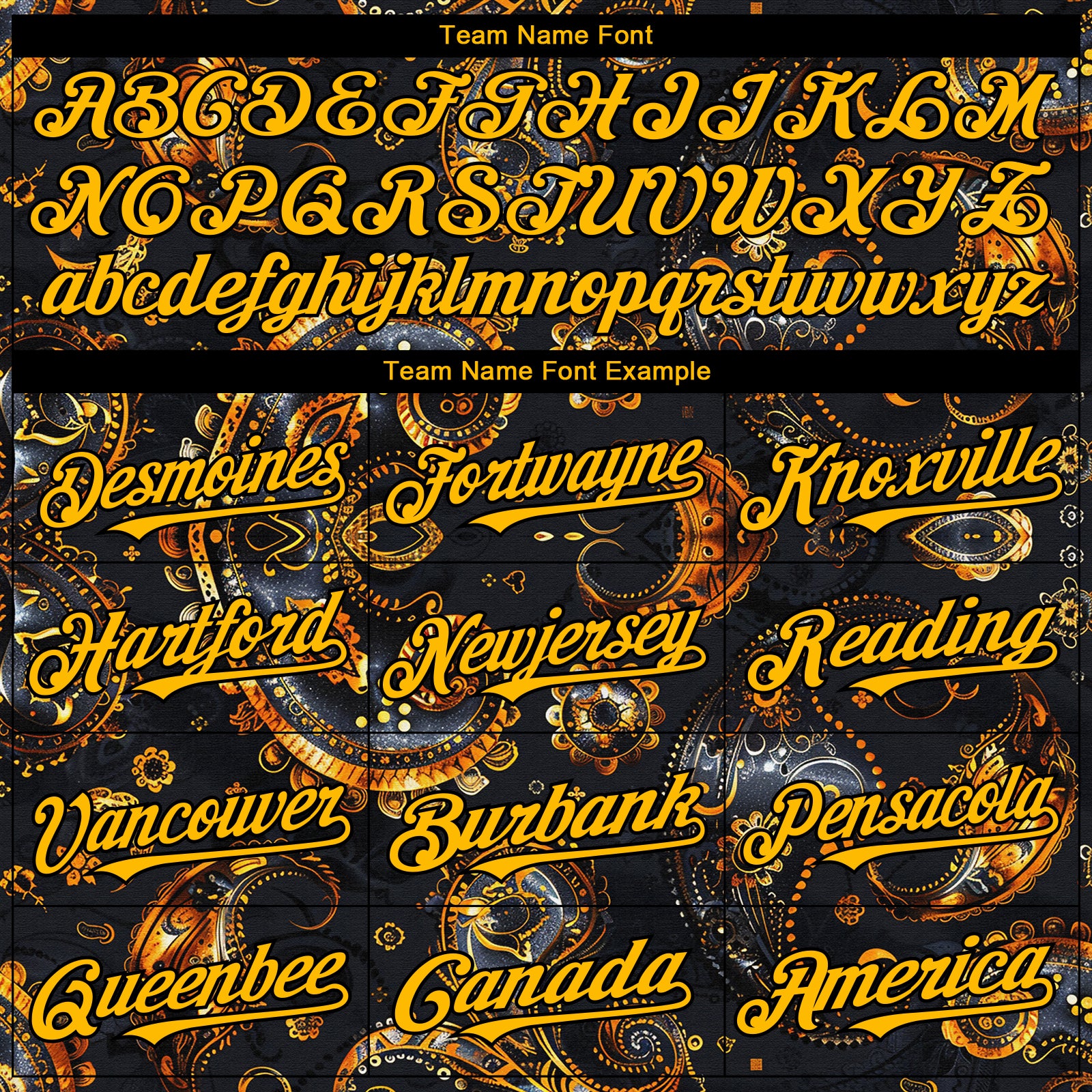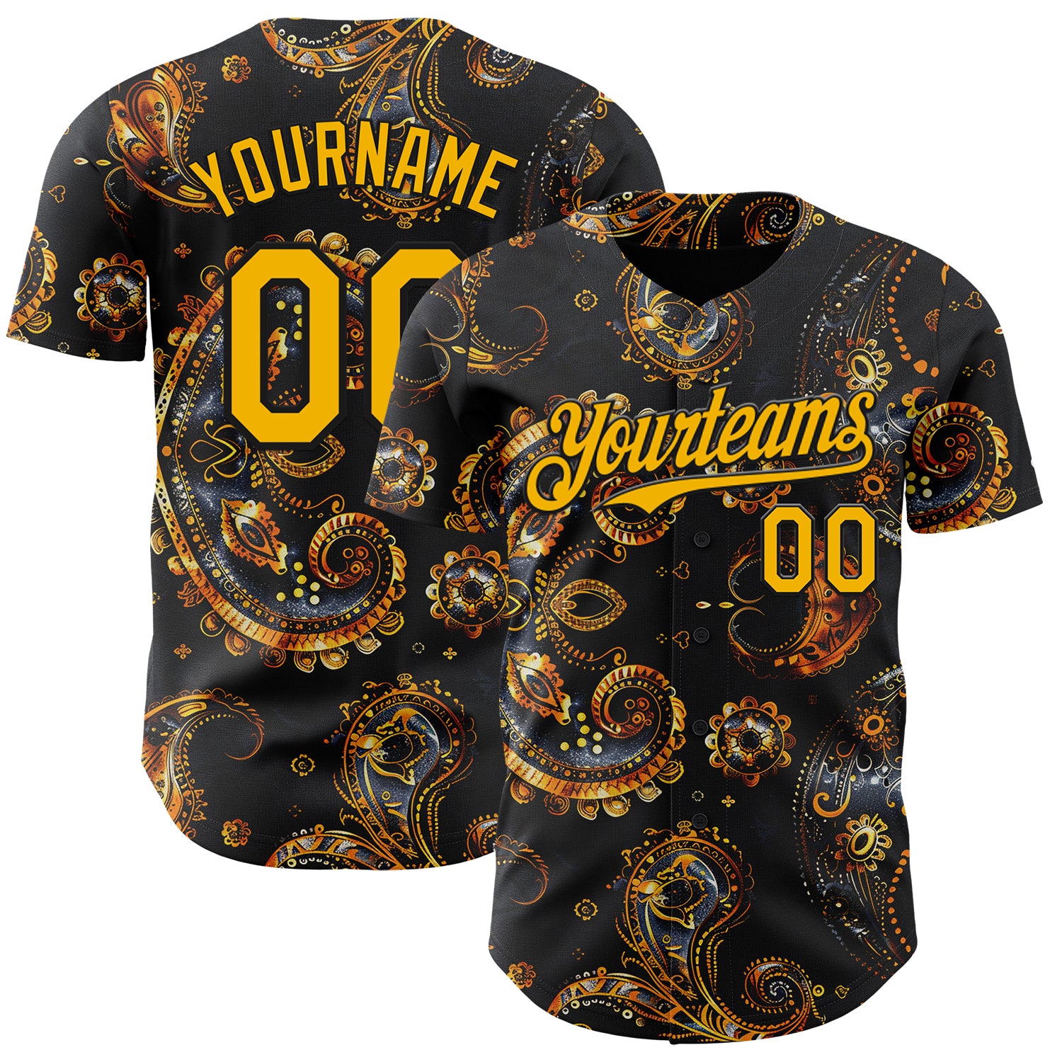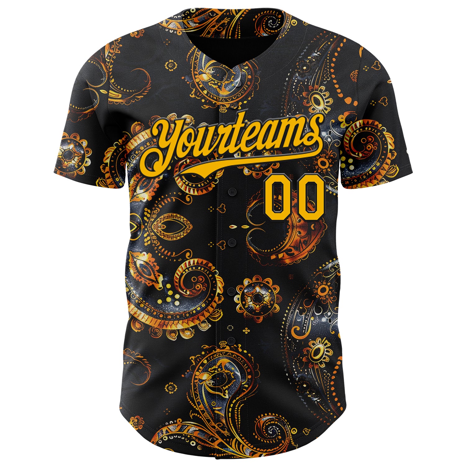 Custom Black Yellow 3D Pattern Design Rave Party Ethnic Paisley Bandana Authentic Baseball Jersey