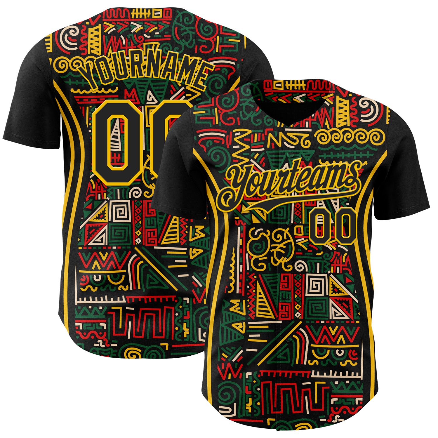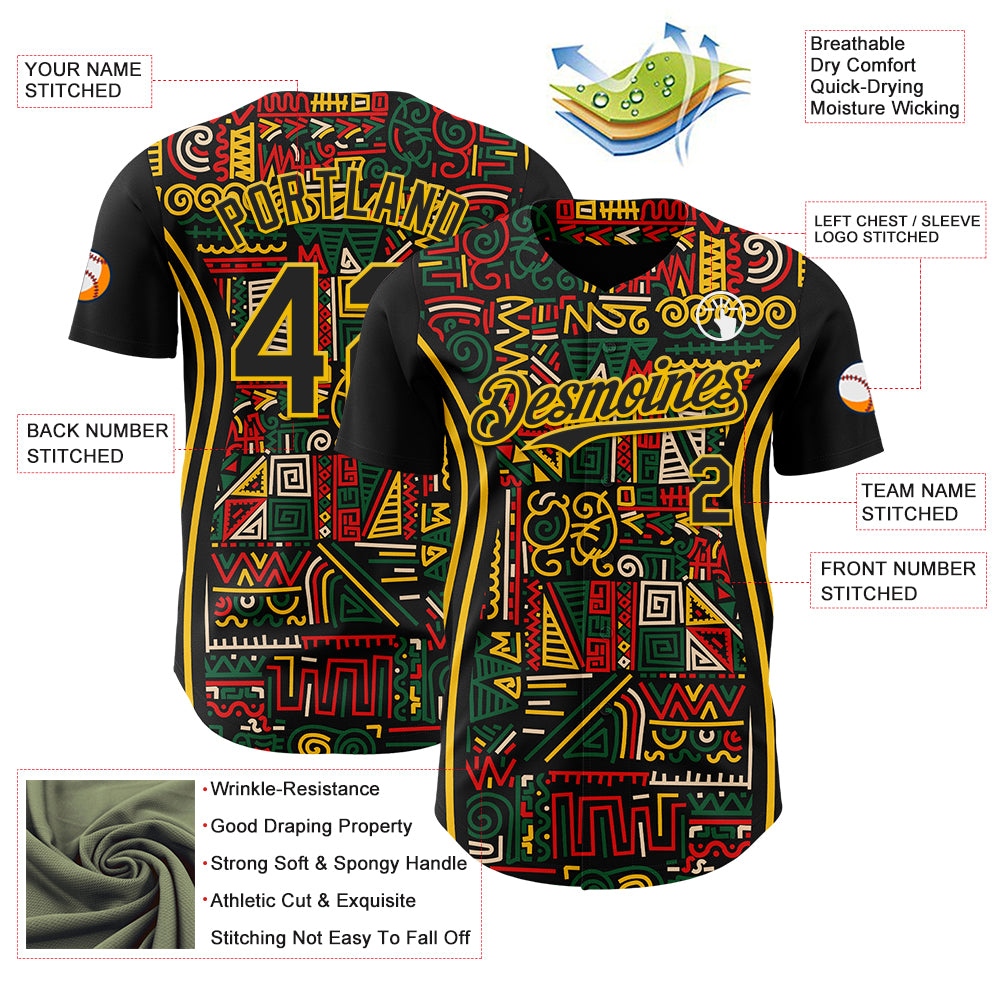 Custom Black Yellow Green-Red 3D Pattern Design Black History Month African Ethnicity Style Abstract Geometric Authentic Baseball Jersey