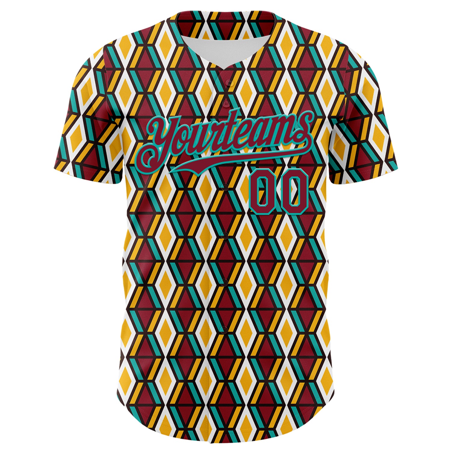Custom White Crimson Yellow-Aqua 3D Pattern Design Black History Month Abstract Geometric Authentic Baseball Jersey