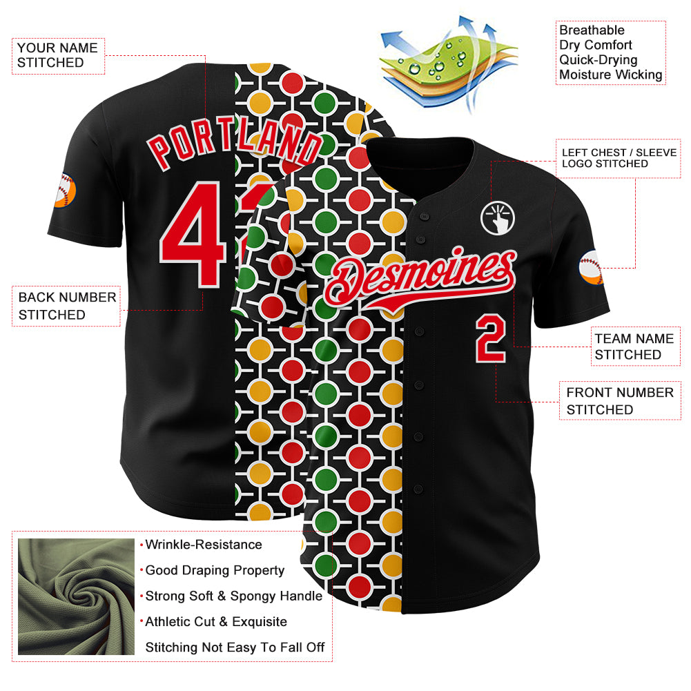 Custom Black Fire Red Yellow Green-White 3D Pattern Design Black History Month African Ethnicity Style Abstract Geometric Authentic Baseball Jersey