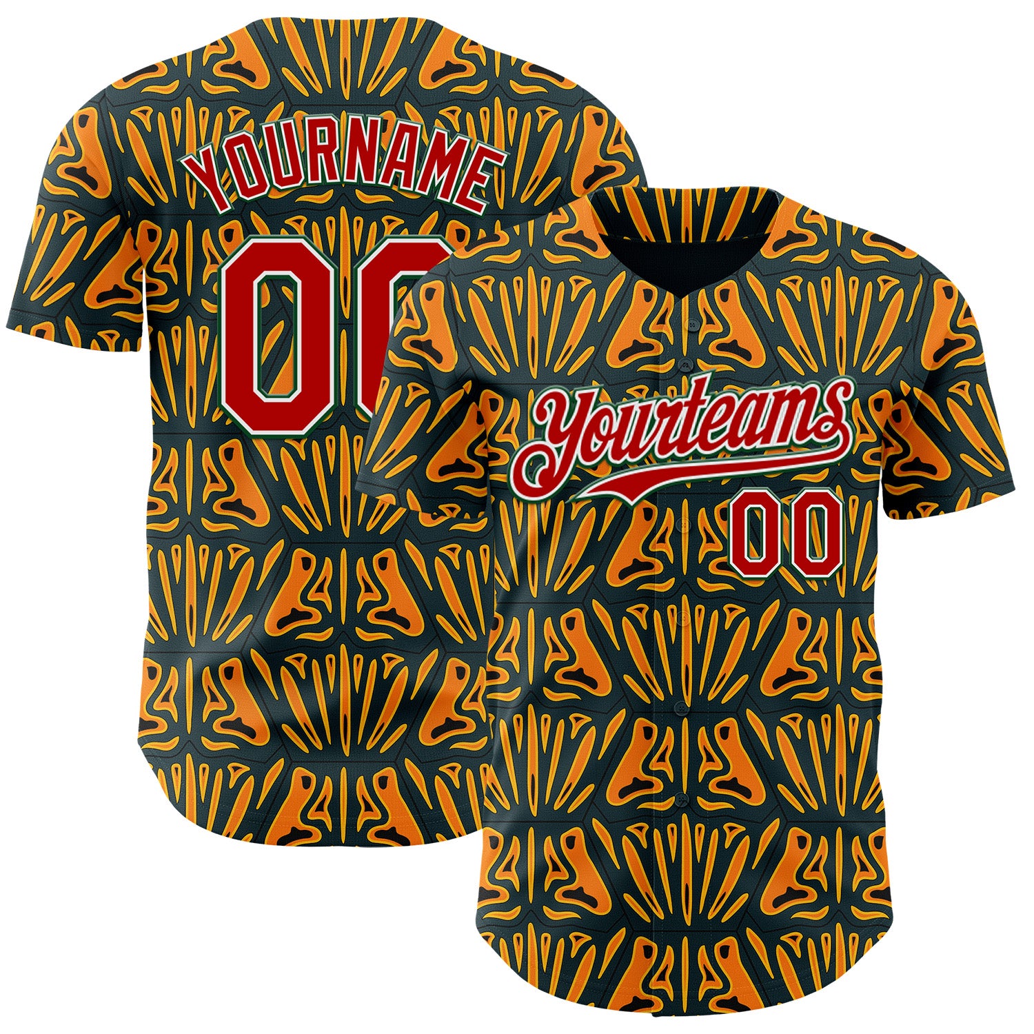 Custom Black Red Yellow Green-White 3D Pattern Design Black History Month African Ethnicity Style Authentic Baseball Jersey