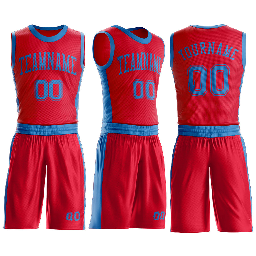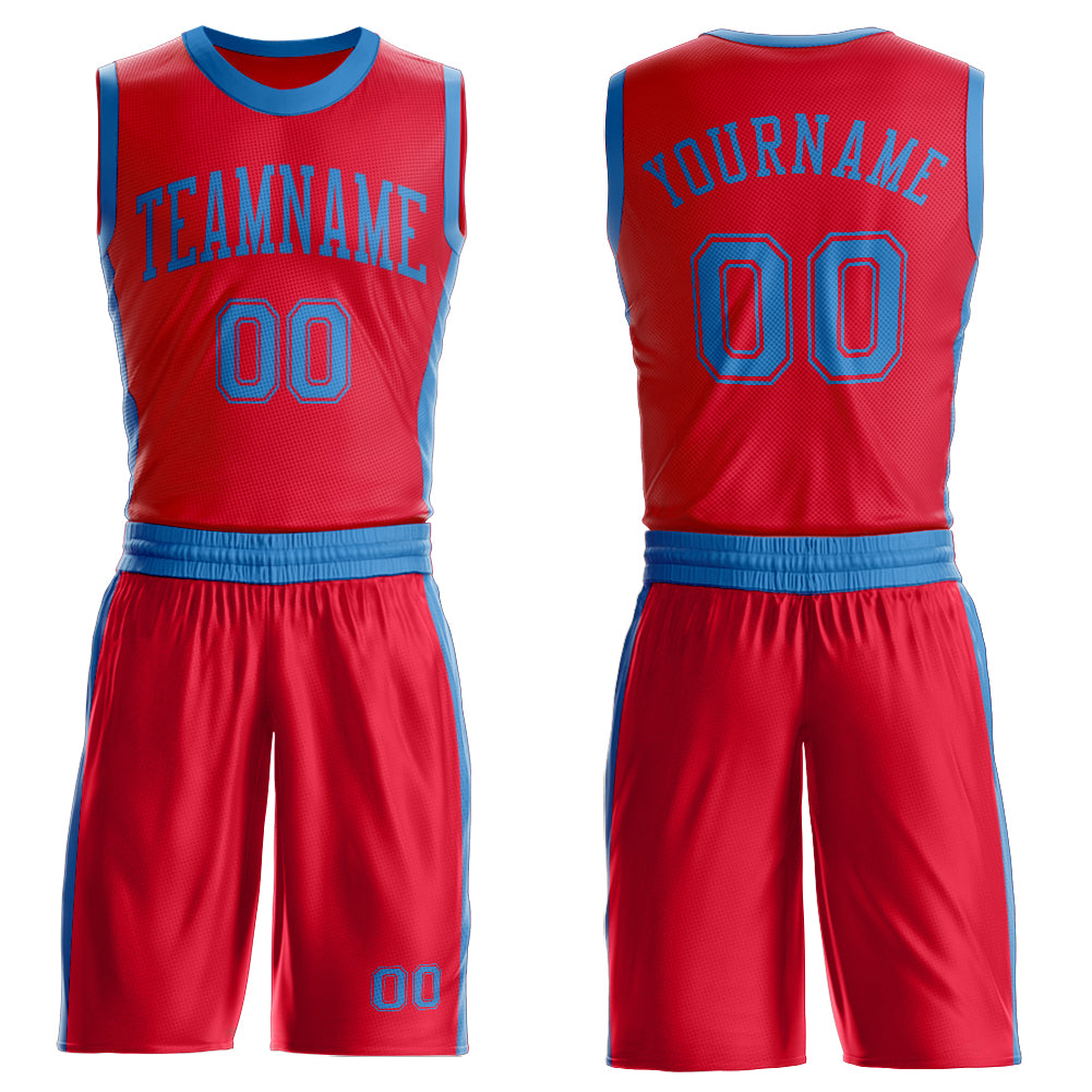 Custom Red Blue Round Neck Suit Basketball Jersey