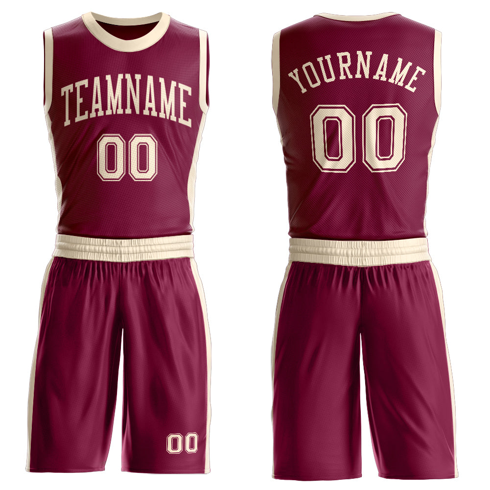 Custom Maroon Cream Round Neck Suit Basketball Jersey