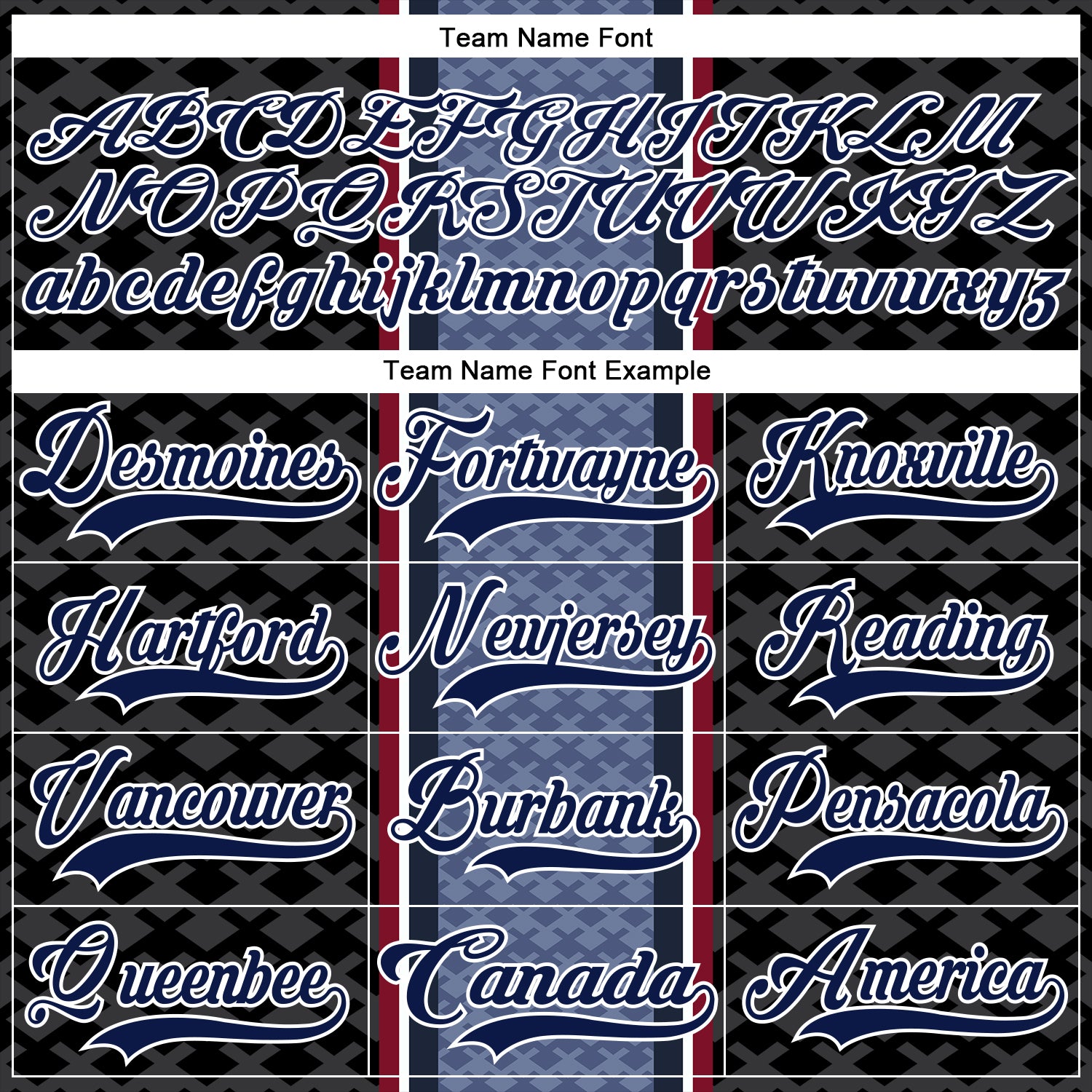 Custom Blue Navy Black Red-White 3D Pattern Design Stripe Hockey Lace Neck Jersey
