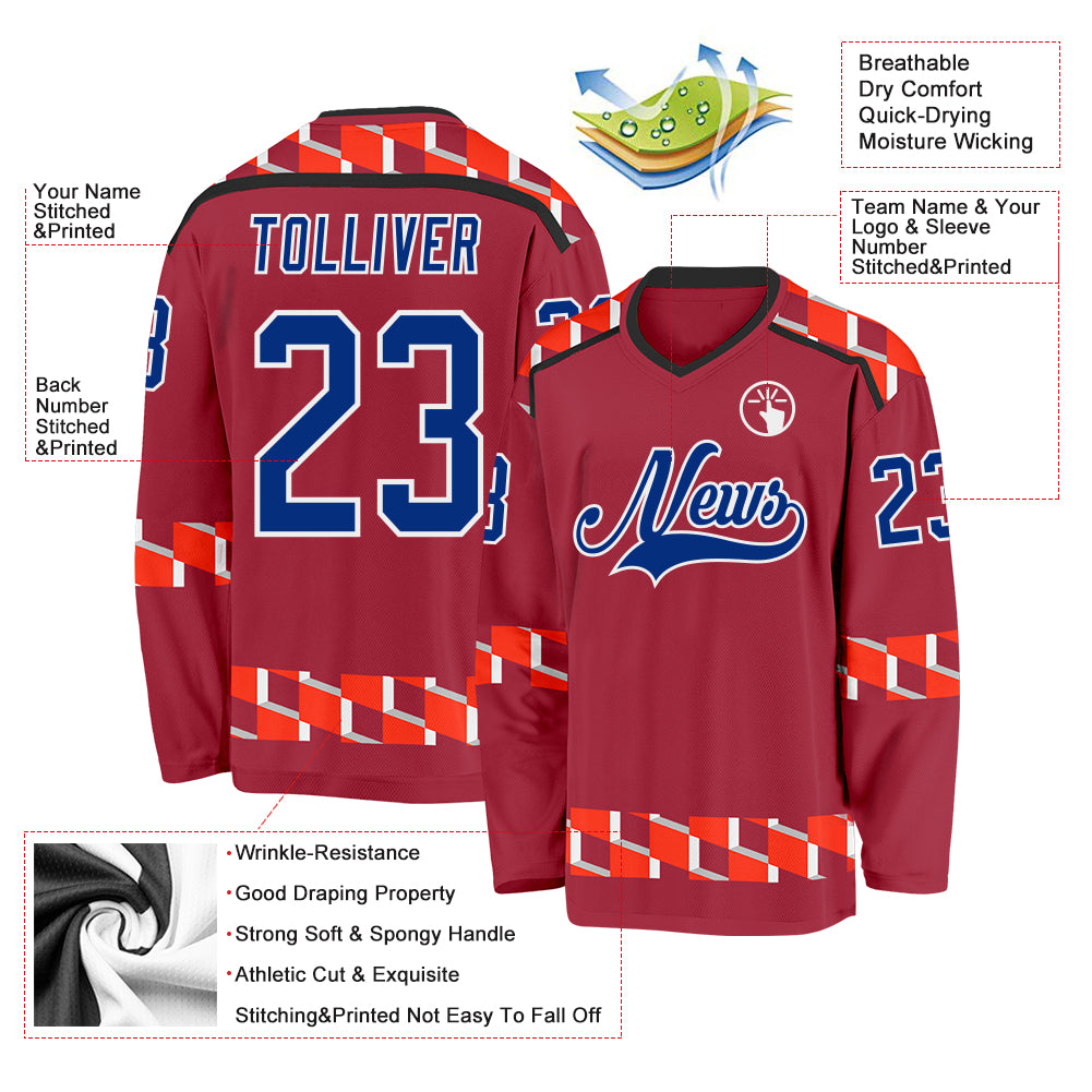 Custom Maroon Royal Orange Black-White 3D Pattern Plaid Hockey Jersey