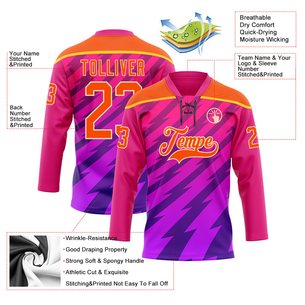 Custom Hot Pink Orange Purple Yellow-Cream 3D Pattern Abstract Gradient Halftone Hockey Lace Neck Jersey