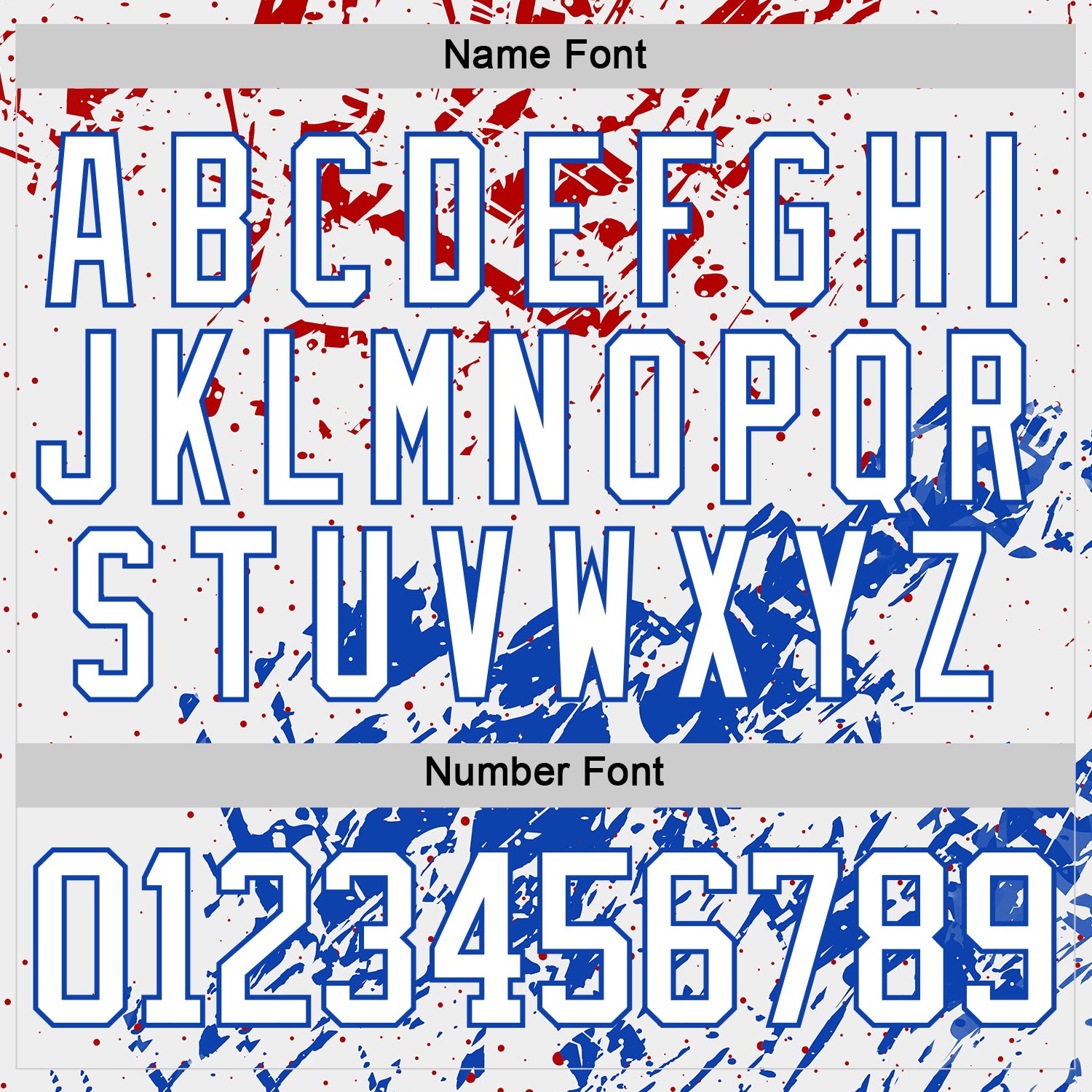 Custom White Thunder Blue-Red 3D Pattern Abstract Splatter Paint Hockey Lace Neck Jersey