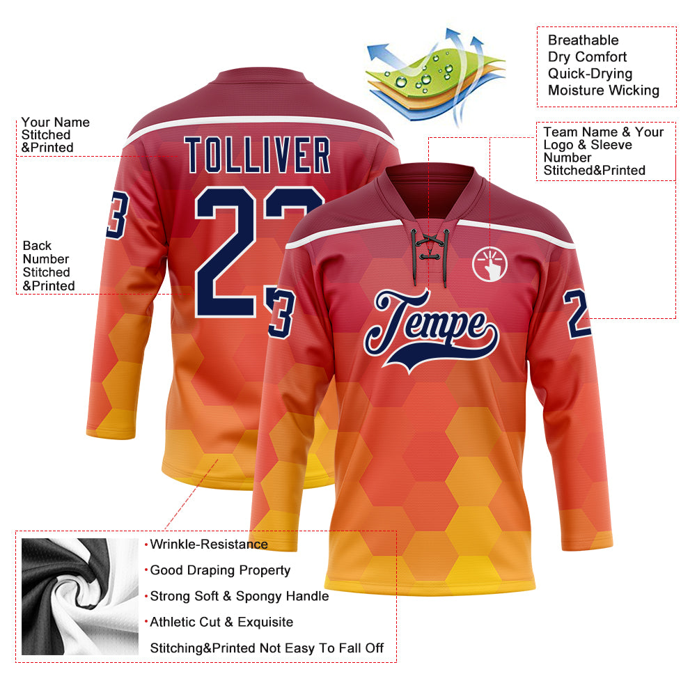 Custom Crimson Navy Yellow-White 3D Pattern Abstract Gradient Halftone Hockey Lace Neck Jersey