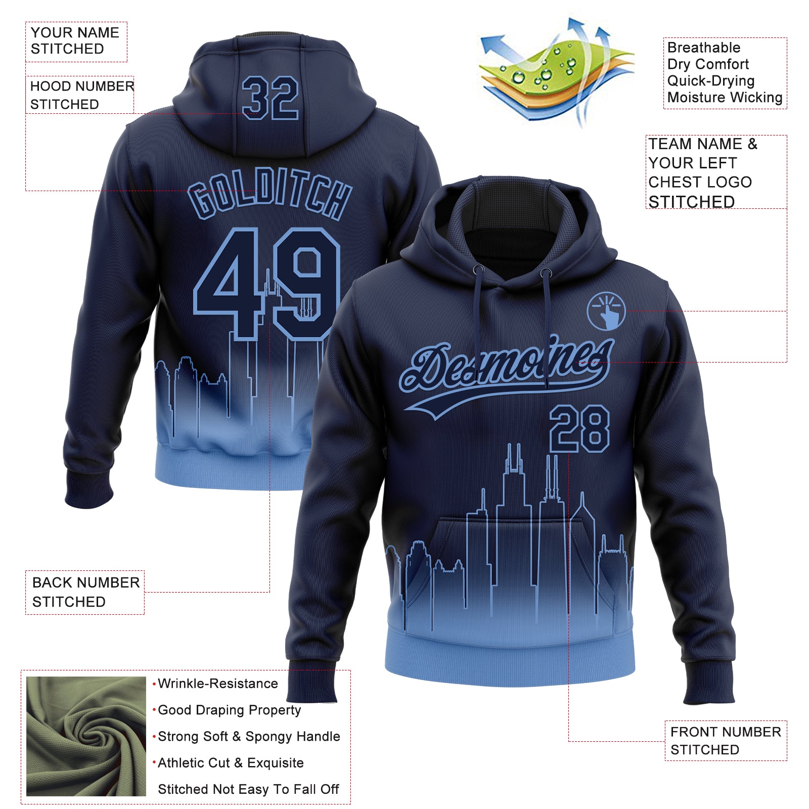 Custom Stitched Navy Light Blue 3D Gradient Fashion Chicago City Edition Sports Pullover Sweatshirt Hoodie