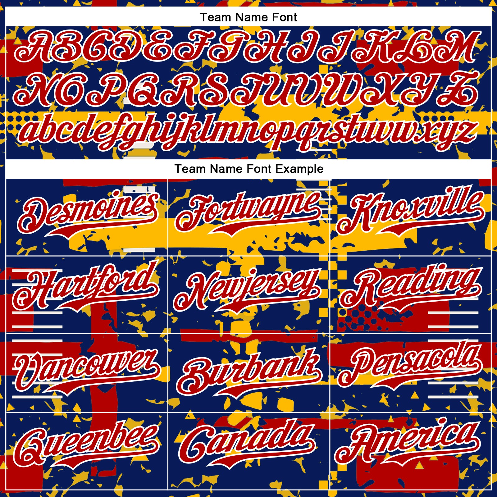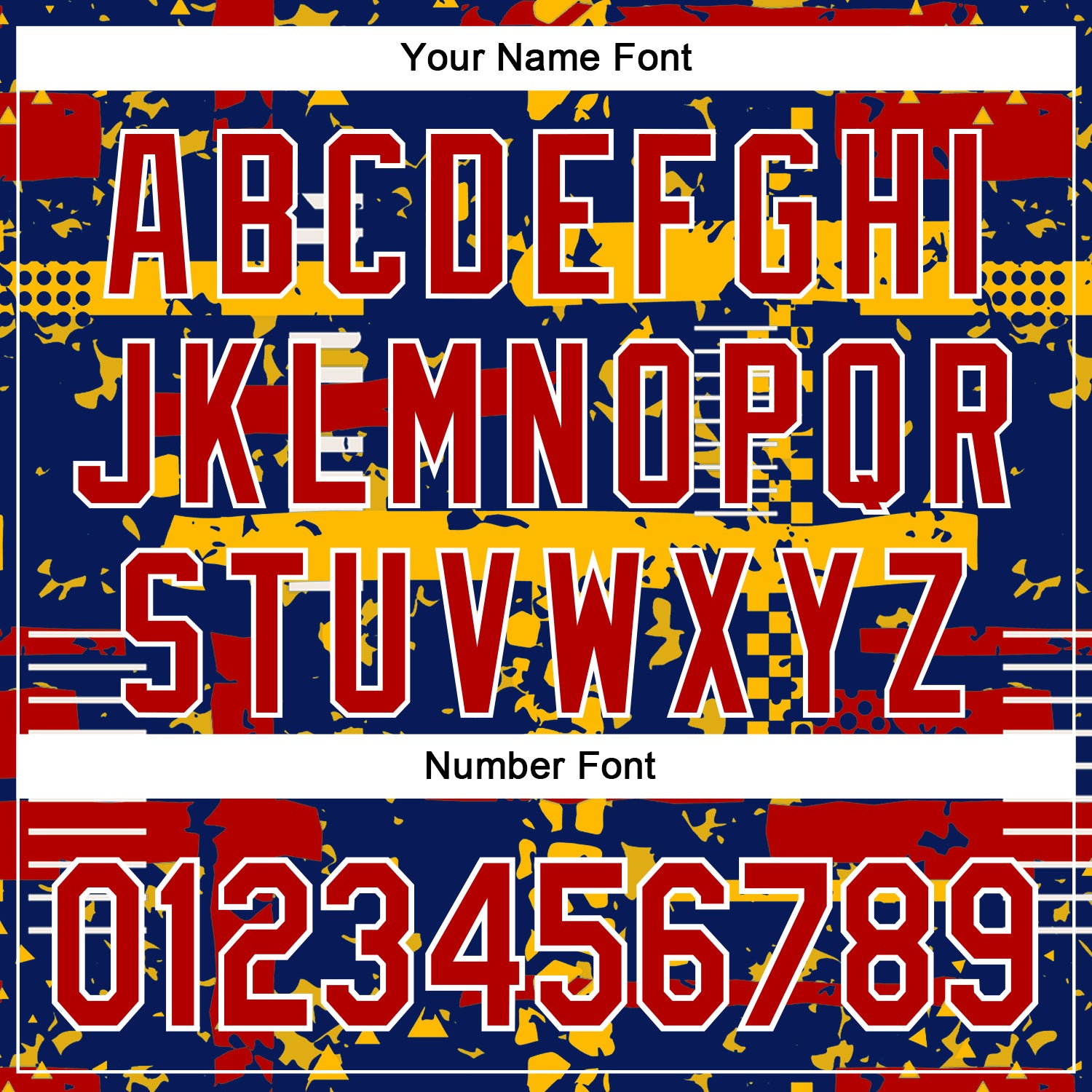 Custom Royal Red Gold-White Abstract Fragment Shape 3D Pattern Design Bomber Full-Snap Varsity Letterman Hoodie Jacket