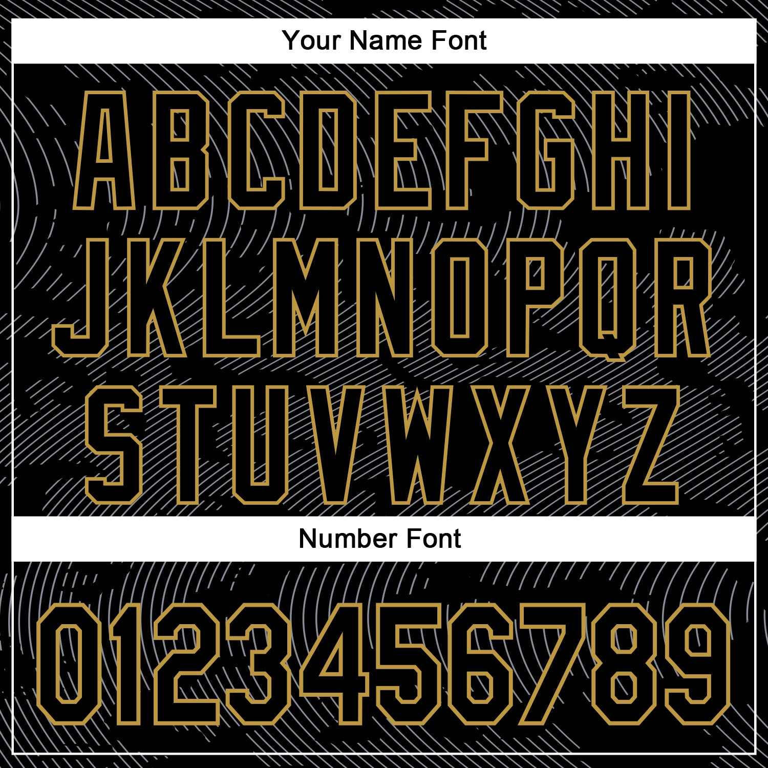 Custom Black Gray-Old Gold Curve Lines 3D Pattern Design Bomber Full-Snap Varsity Letterman Hoodie Jacket