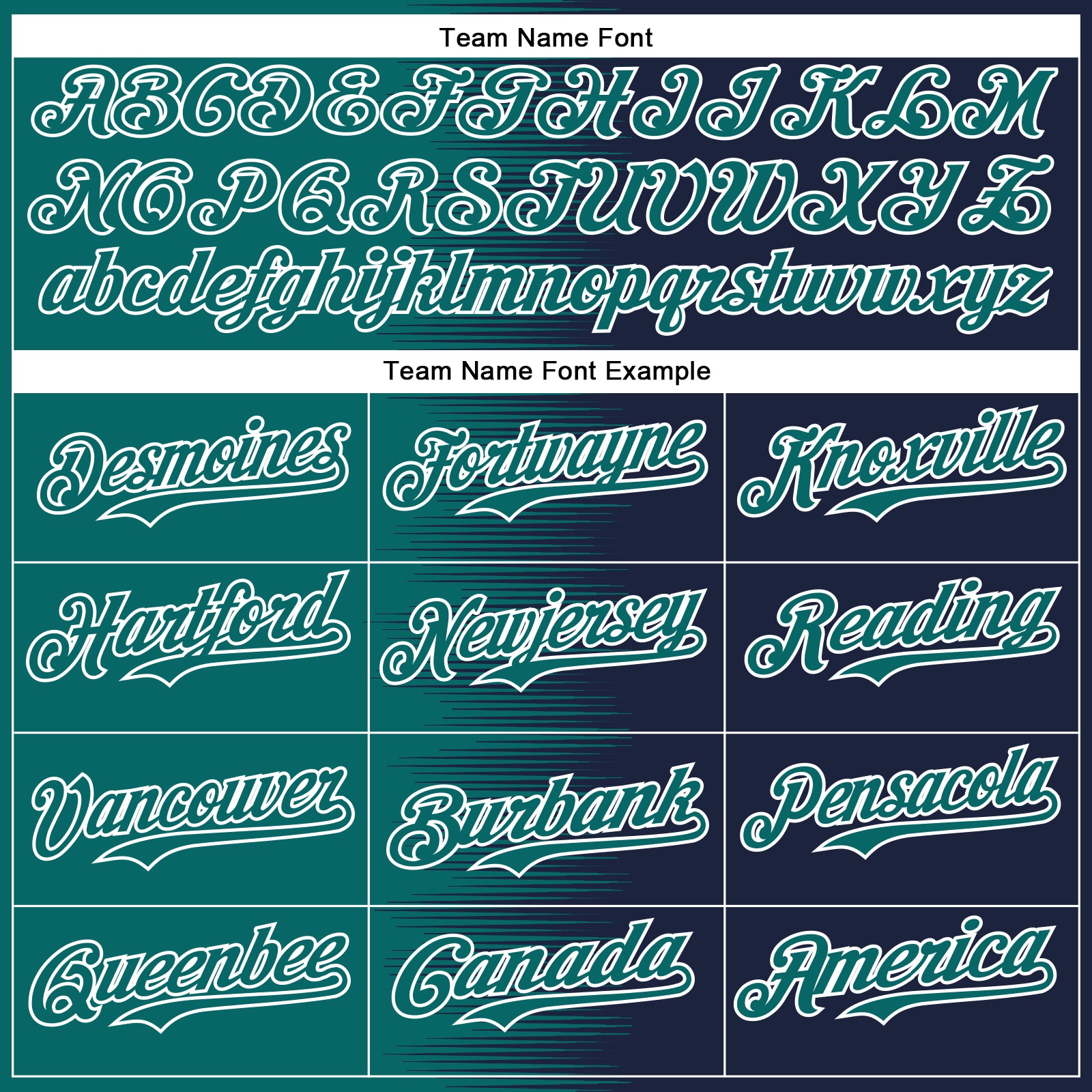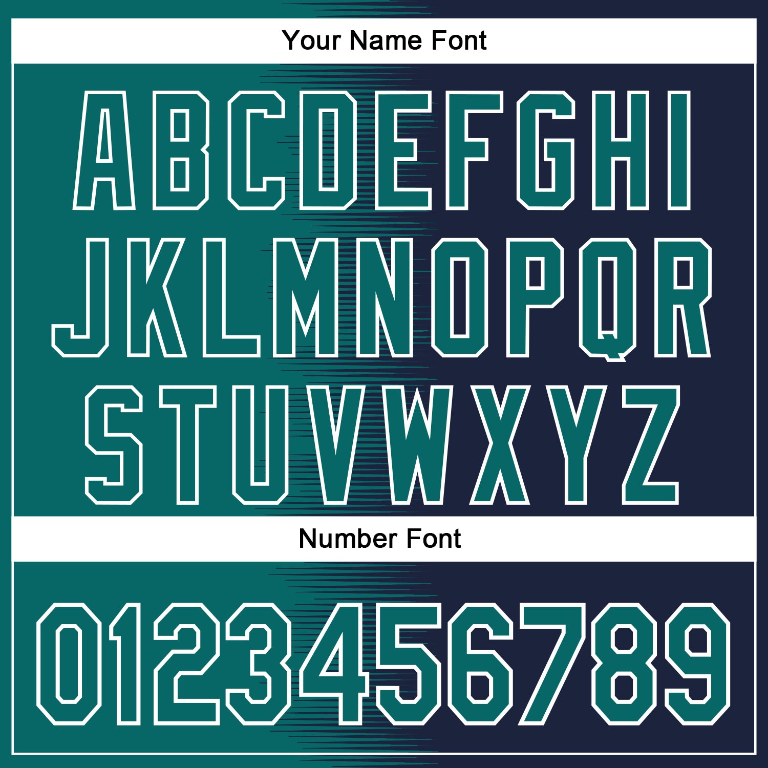 Custom Teal Navy-White Gradient Line Bomber Full-Snap Varsity Letterman Hoodie Jacket