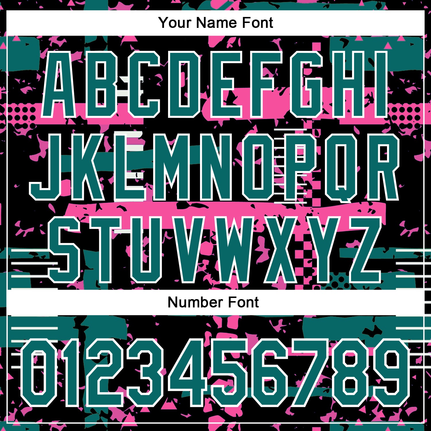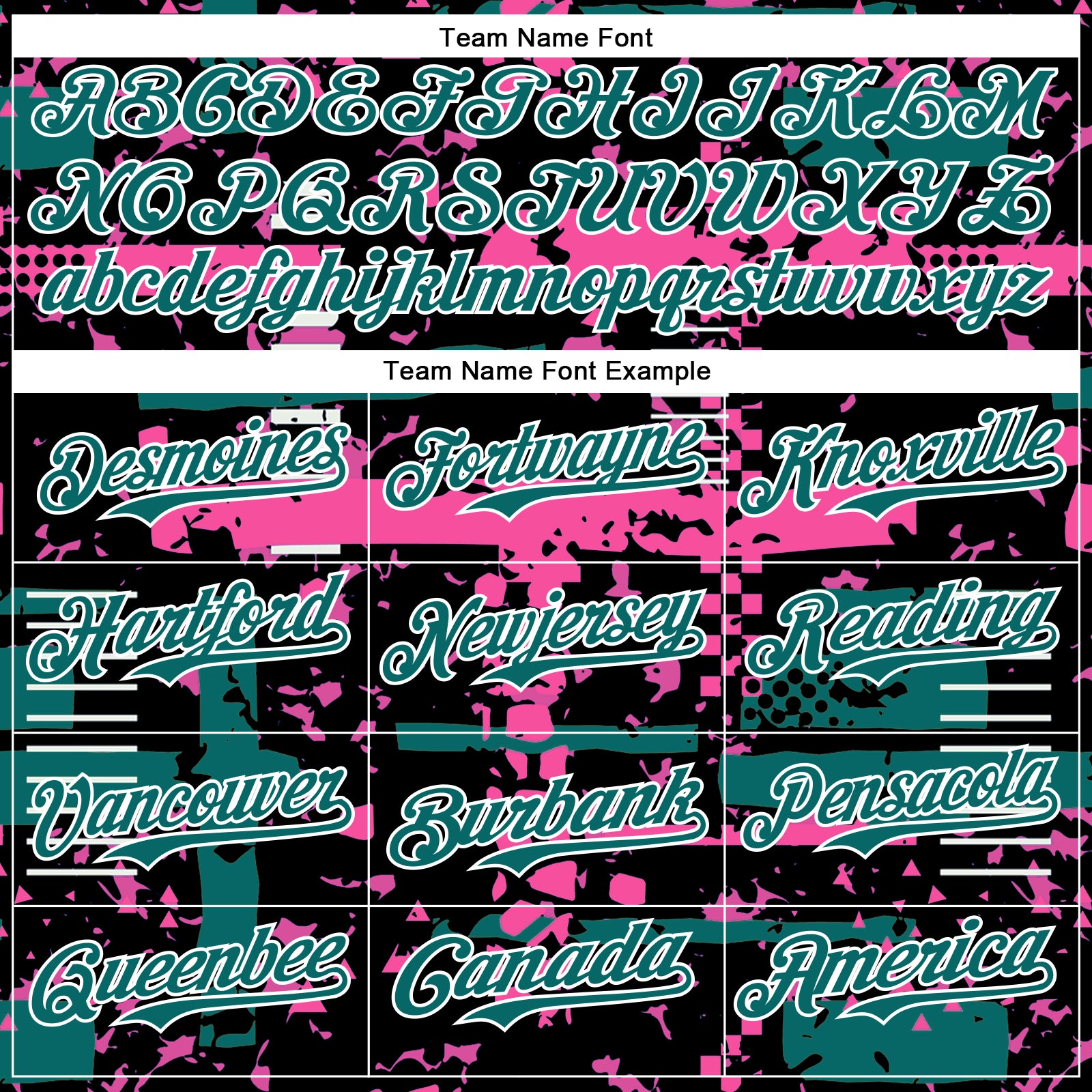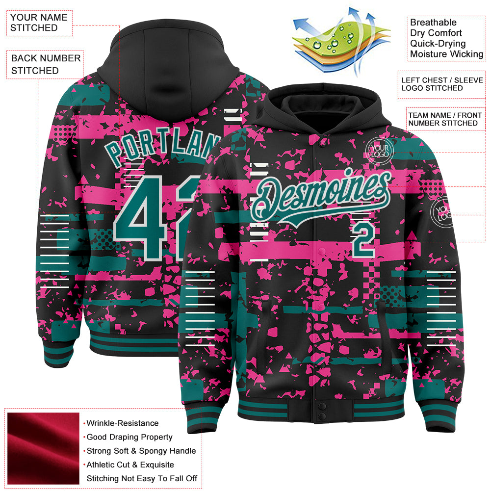 Custom Black Teal Pink-White Abstract Fragment Shape 3D Pattern Design Bomber Full-Snap Varsity Letterman Hoodie Jacket