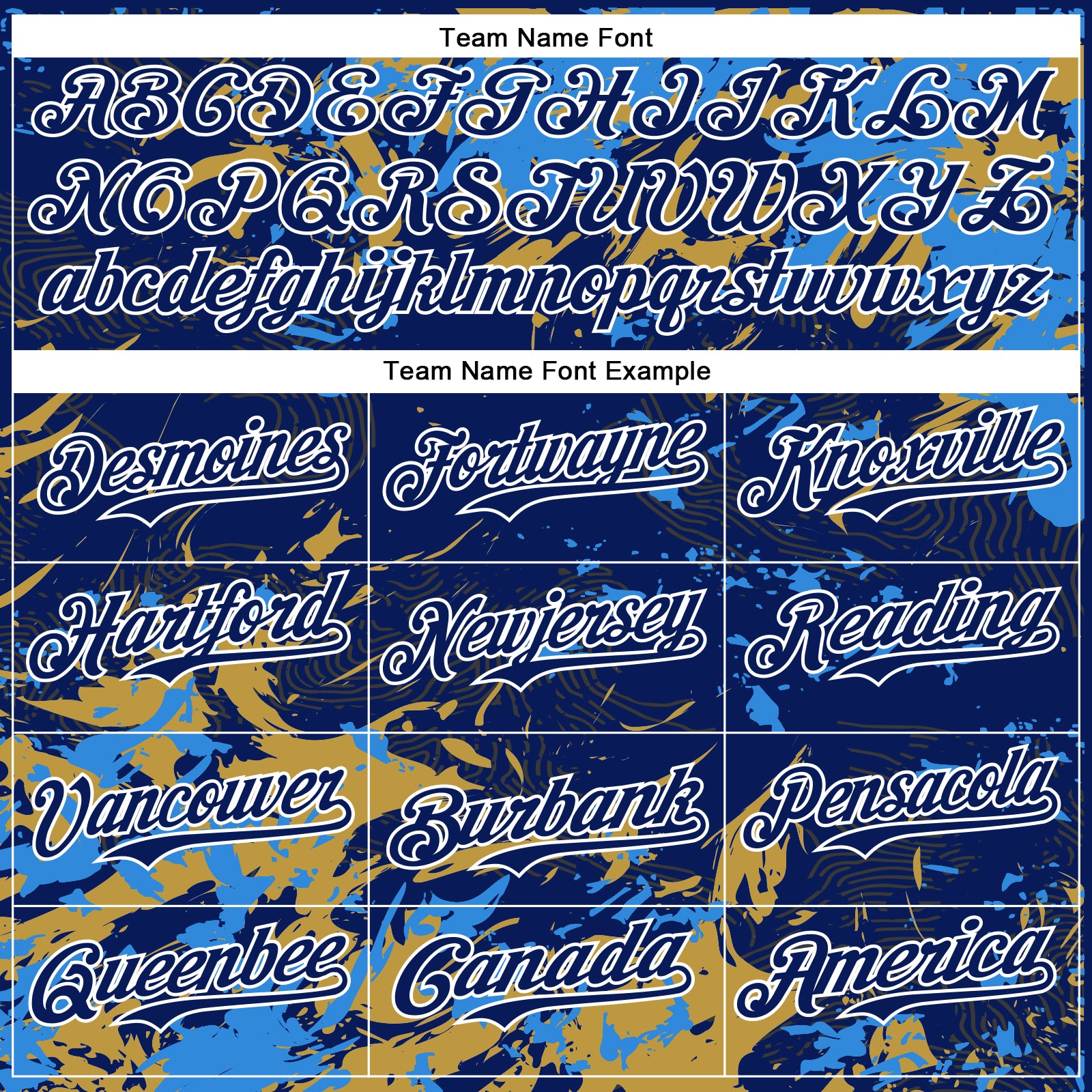 Custom Royal Powder Blue Old Gold-White Splash 3D Pattern Design Bomber Full-Snap Varsity Letterman Hoodie Jacket