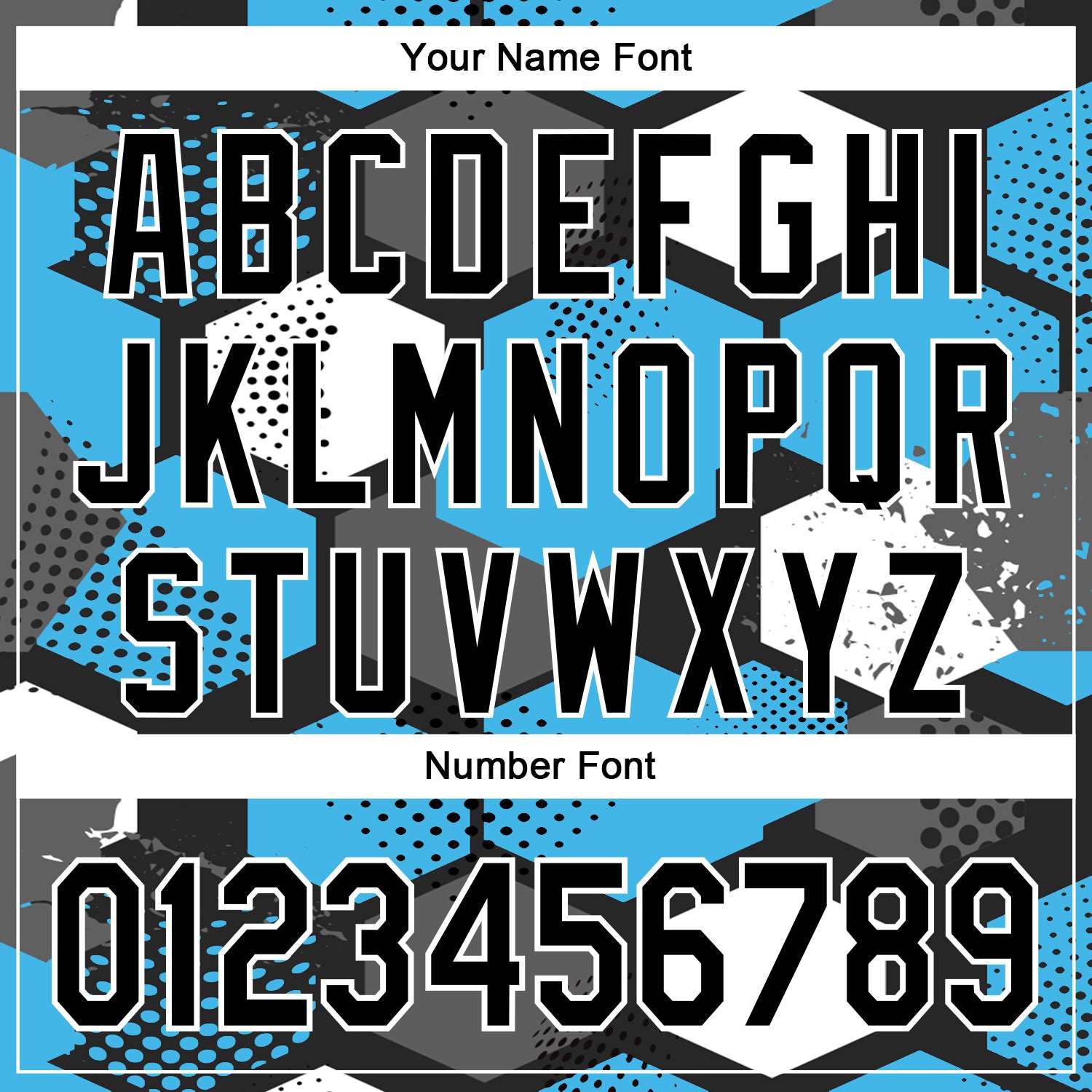 Custom Black Sky Blue-White Geometric Shape 3D Pattern Design Bomber Full-Snap Varsity Letterman Hoodie Jacket