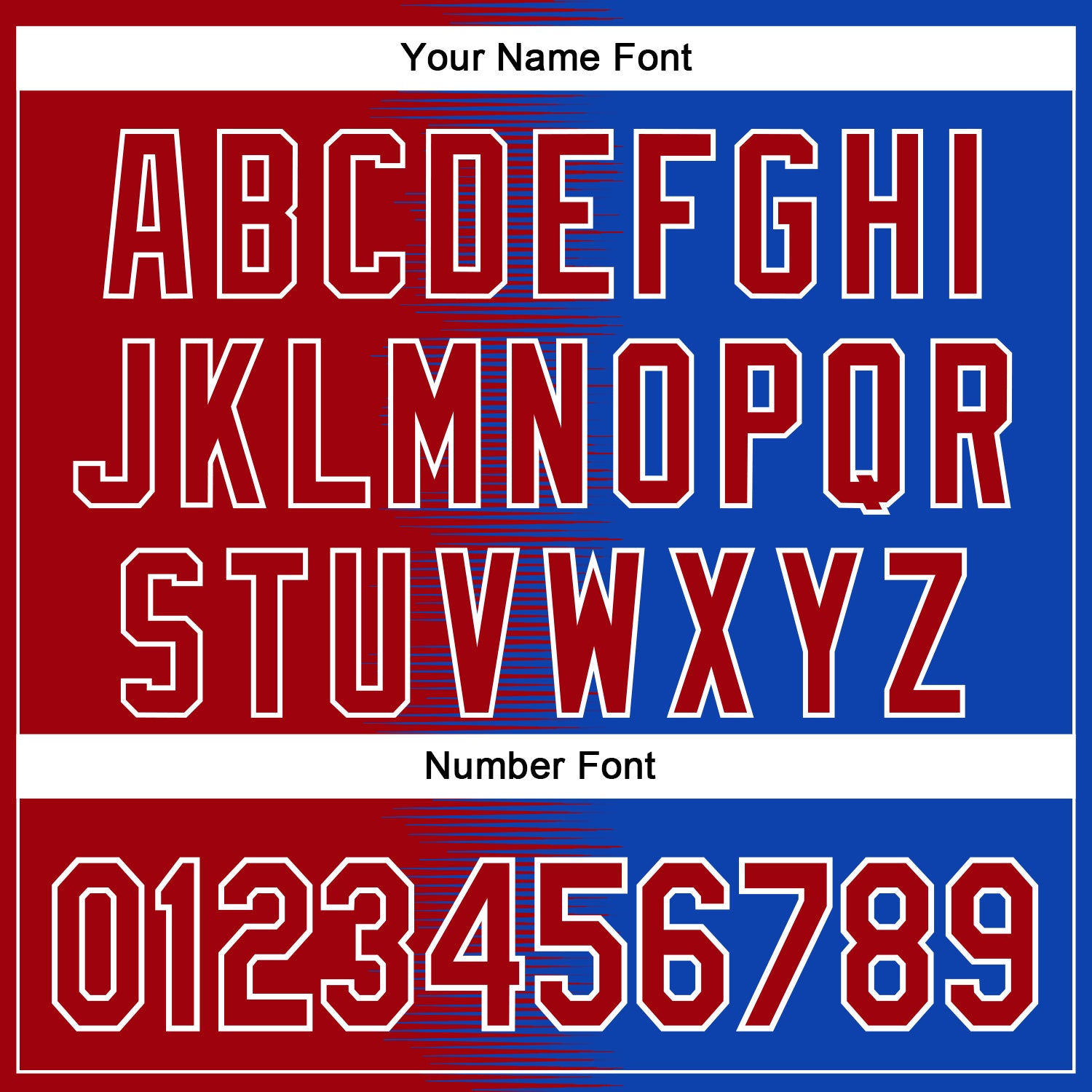 Custom Red Thunder Blue-White Gradient Line Bomber Full-Snap Varsity Letterman Hoodie Jacket