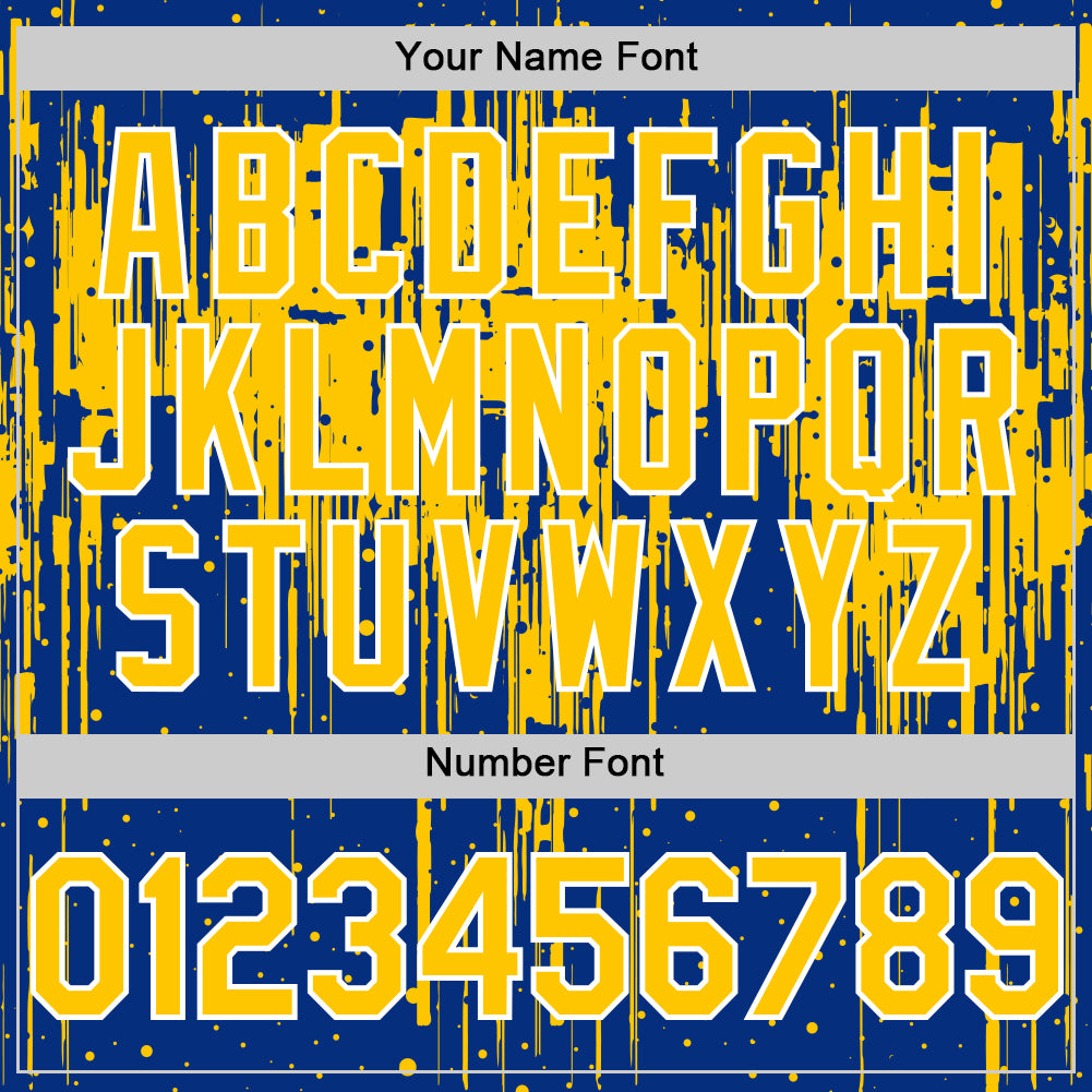 Custom Royal Yellow-White Dripping Splatter 3D Pattern Design Bomber Full-Snap Varsity Letterman Hoodie Jacket