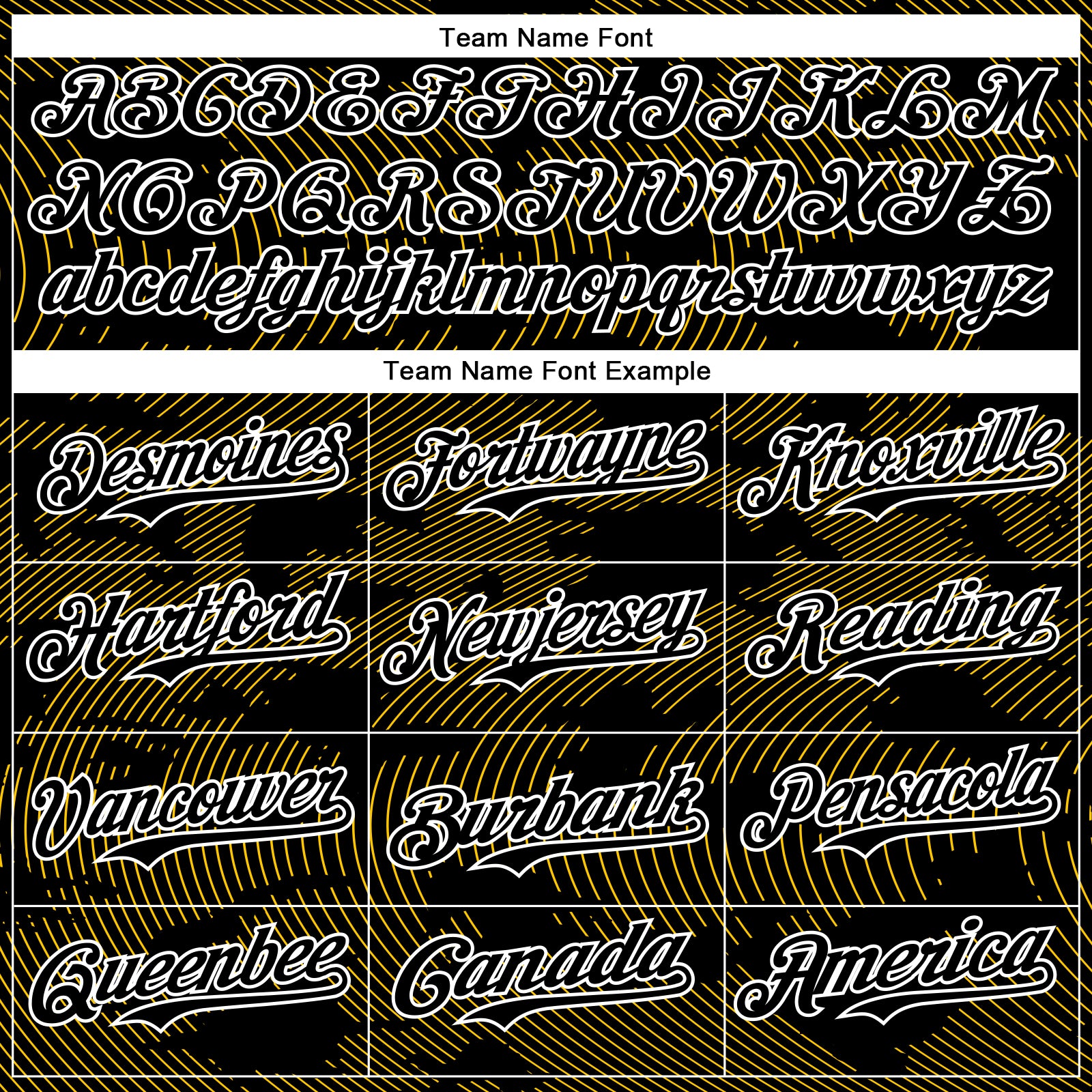 Custom Black Yellow-White Curve Lines 3D Pattern Design Bomber Full-Snap Varsity Letterman Hoodie Jacket