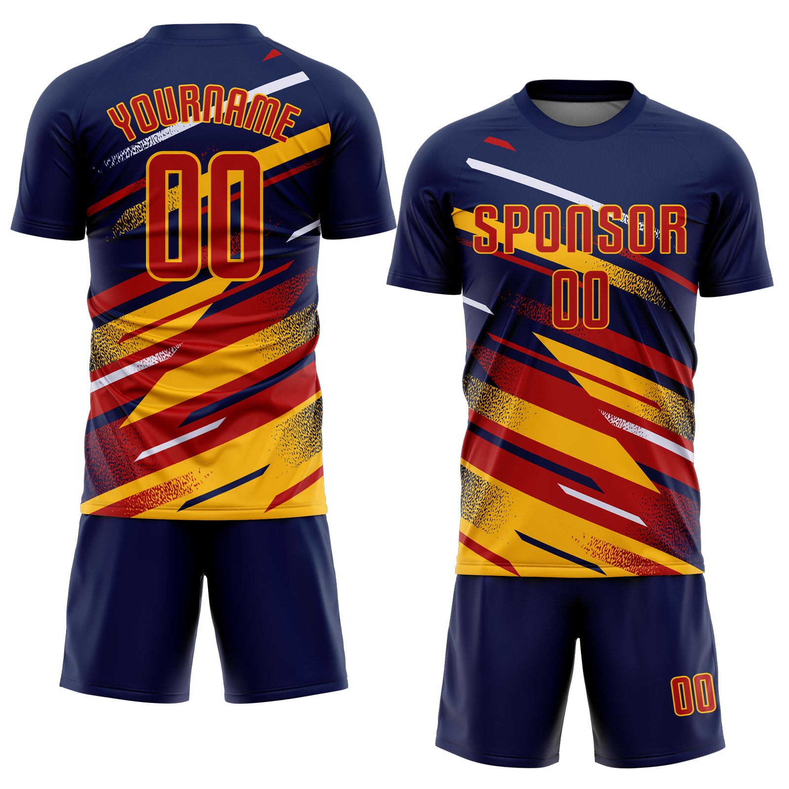 Custom Navy Red Gold-White Grunge Stripe And Grainy Sports Sublimation Soccer Uniform Jersey