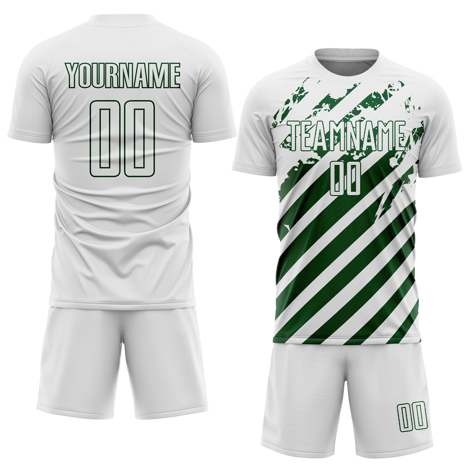 Custom White Green Distressed Diagonal Stripe Pattern Sports Sublimation Soccer Uniform Jersey