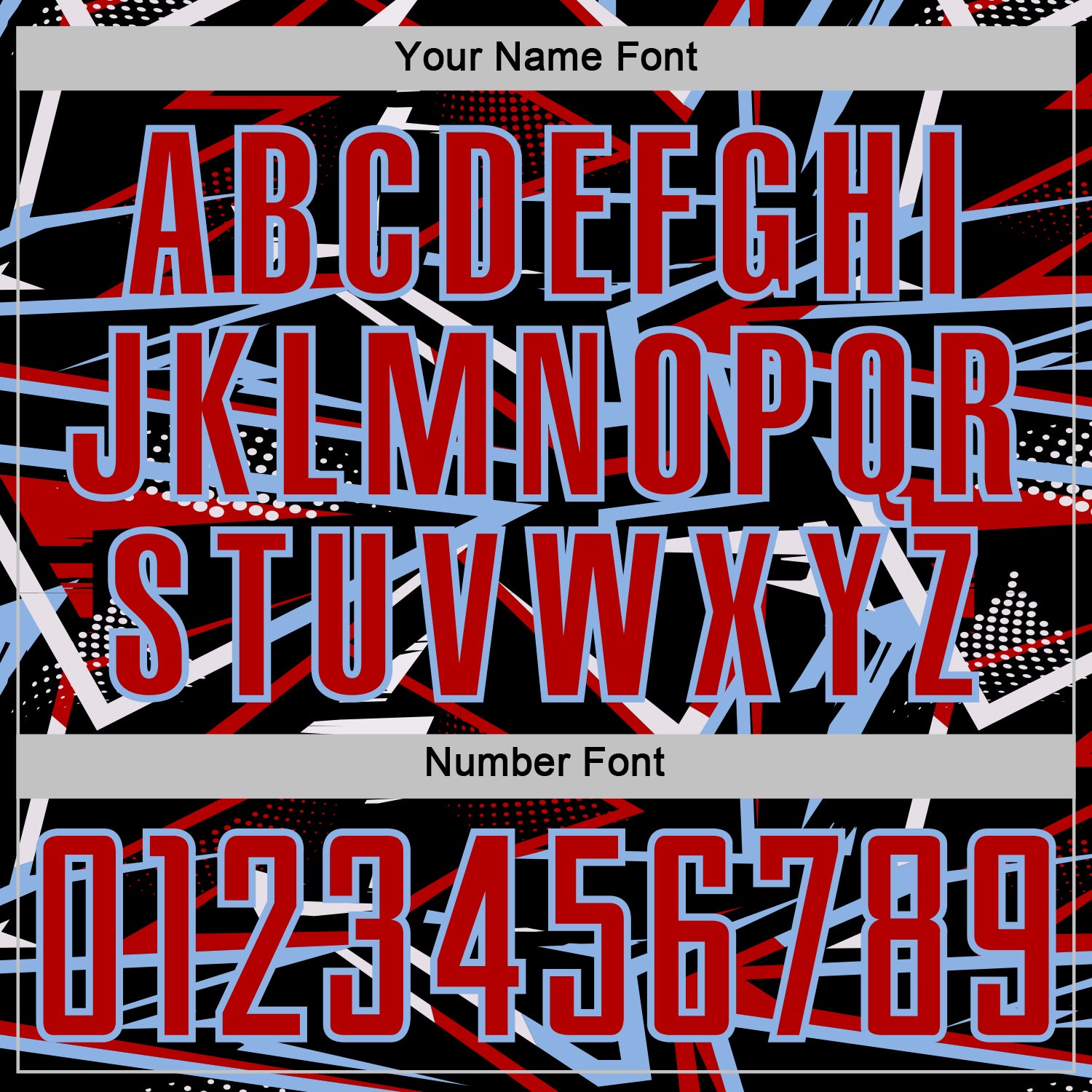 Custom Black Red Light Blue-White Abstract Geometric Stripes Sports Sublimation Soccer Uniform Jersey