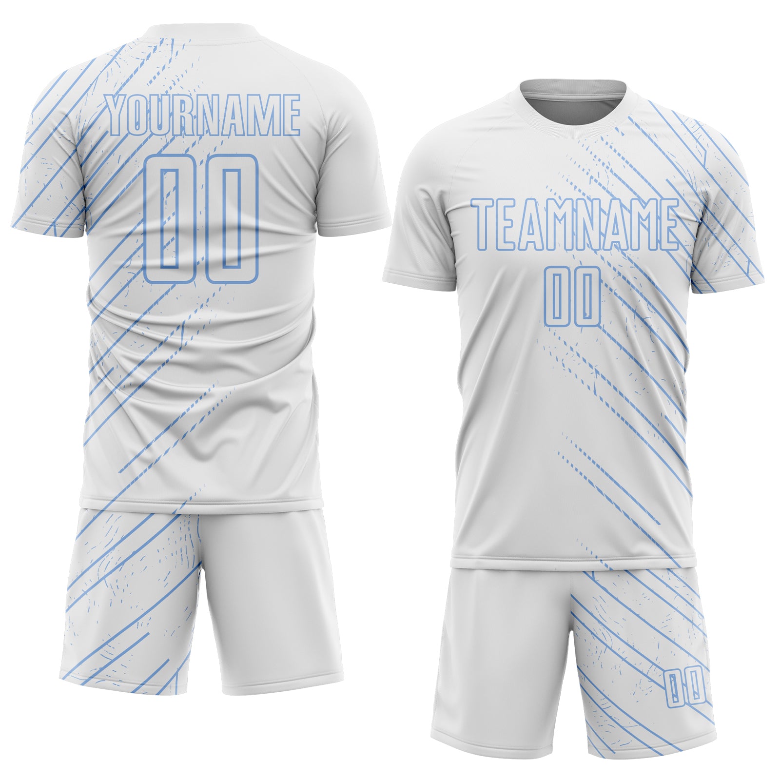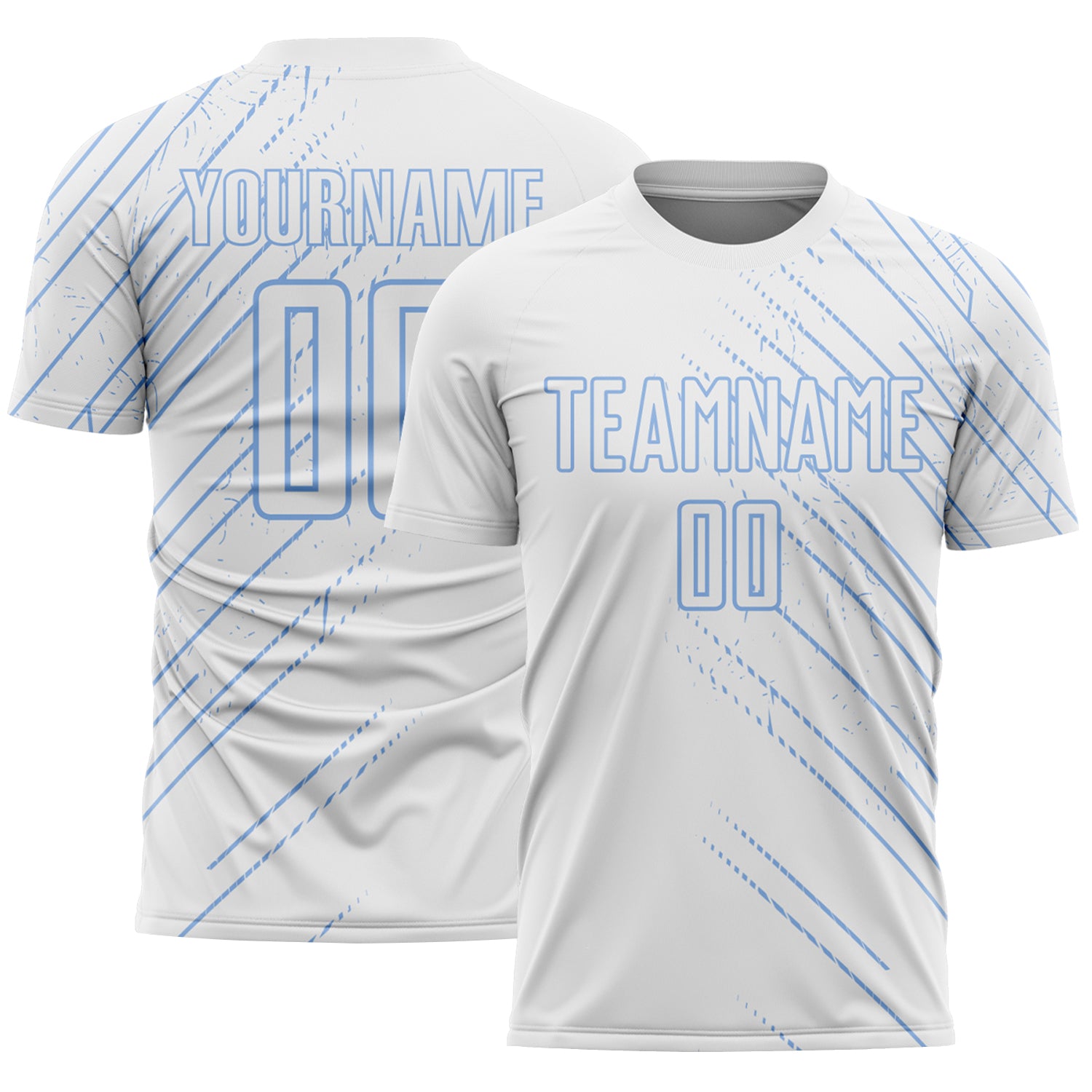 Custom White Light Blue Lines Sports Sublimation Soccer Uniform Jersey