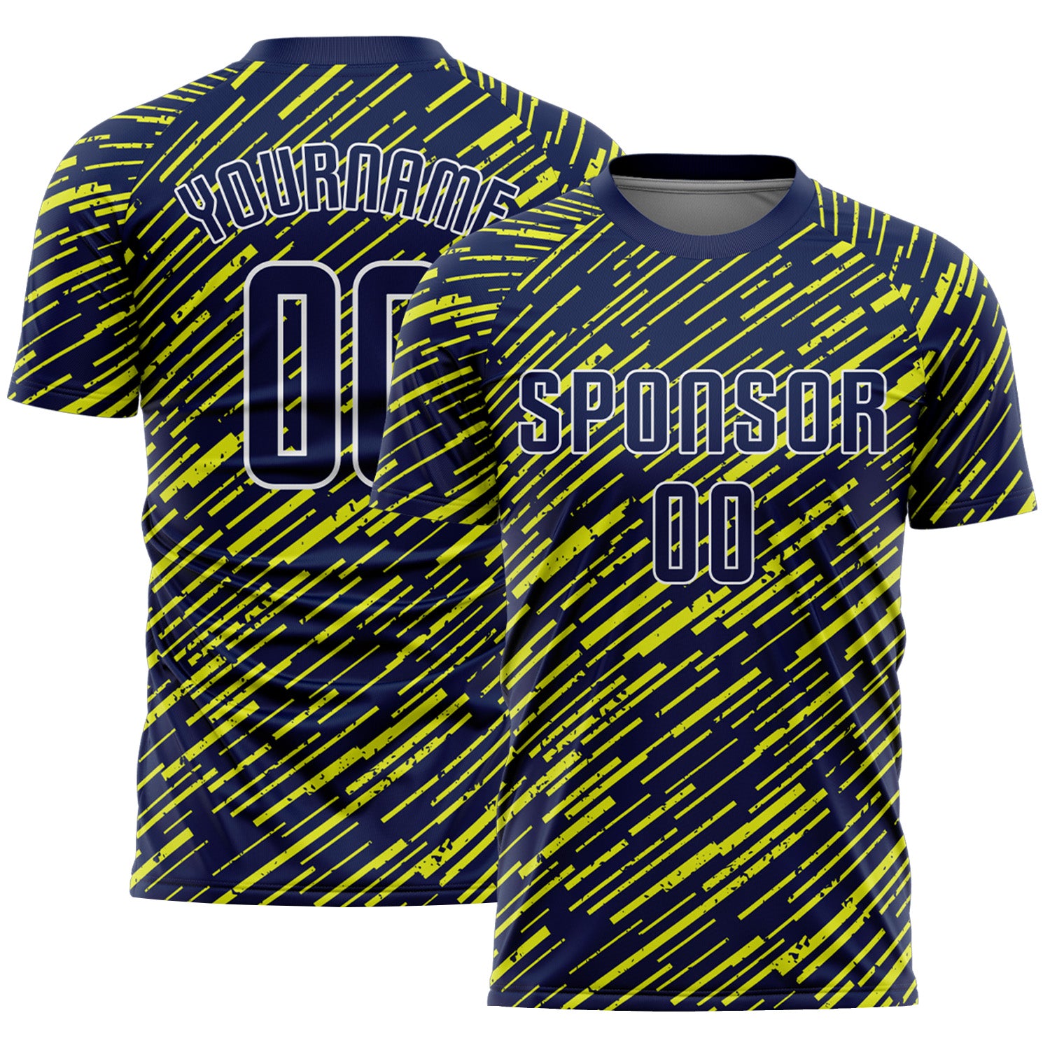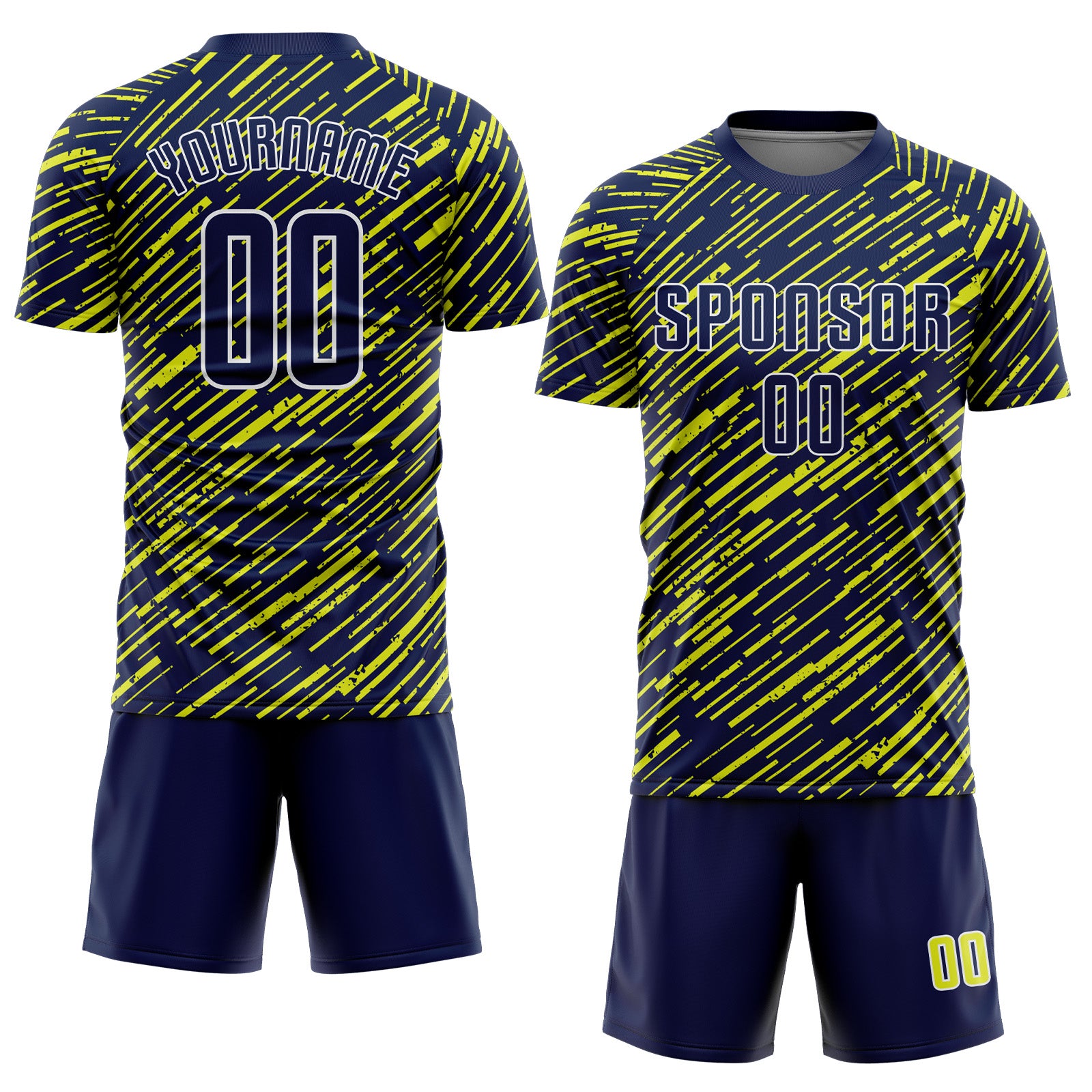Custom Navy Neon Yellow-White Line Sports Sublimation Soccer Uniform Jersey