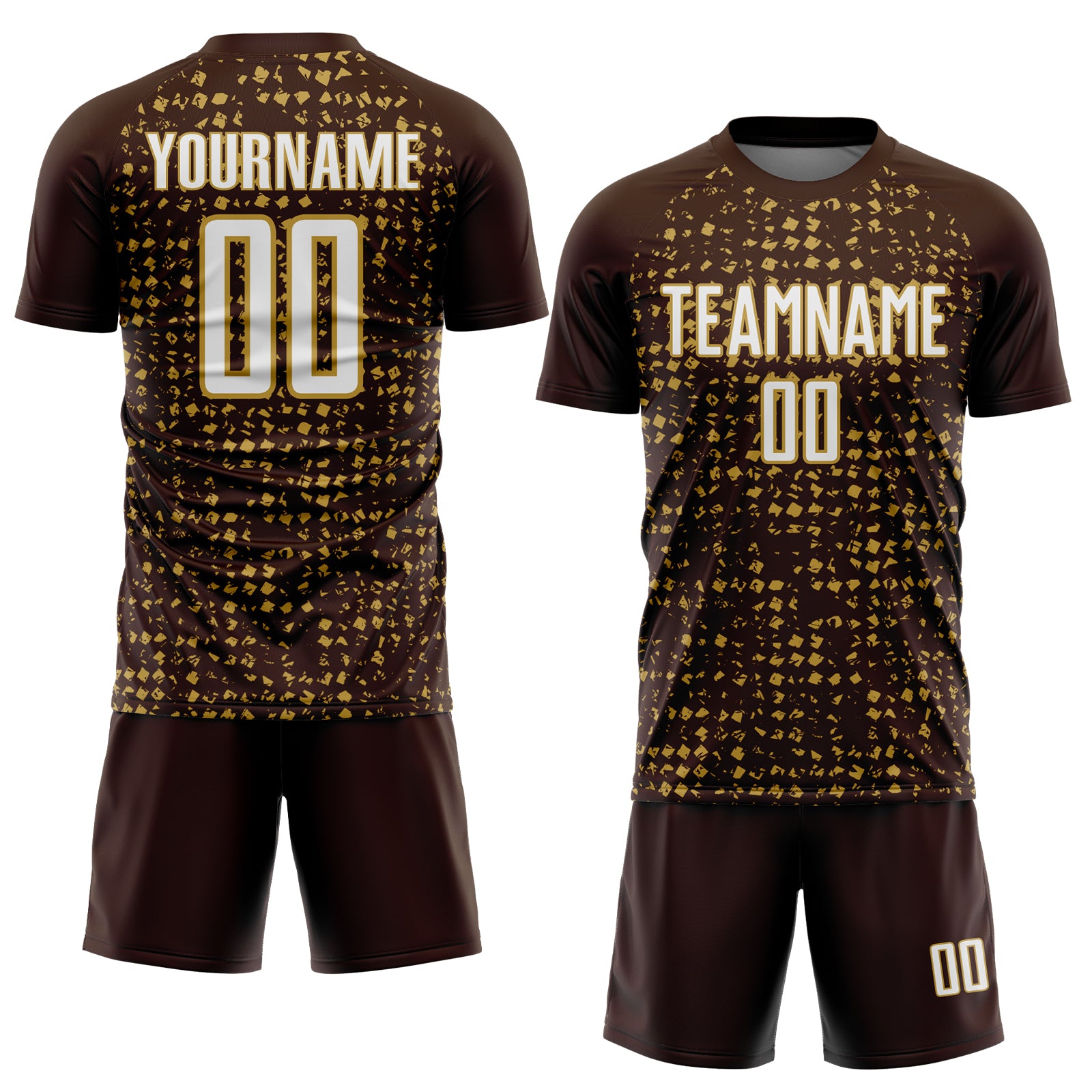 Custom Brown White-Old Gold Digital Geometric Fragment Speckles Sublimation Soccer Uniform Jersey