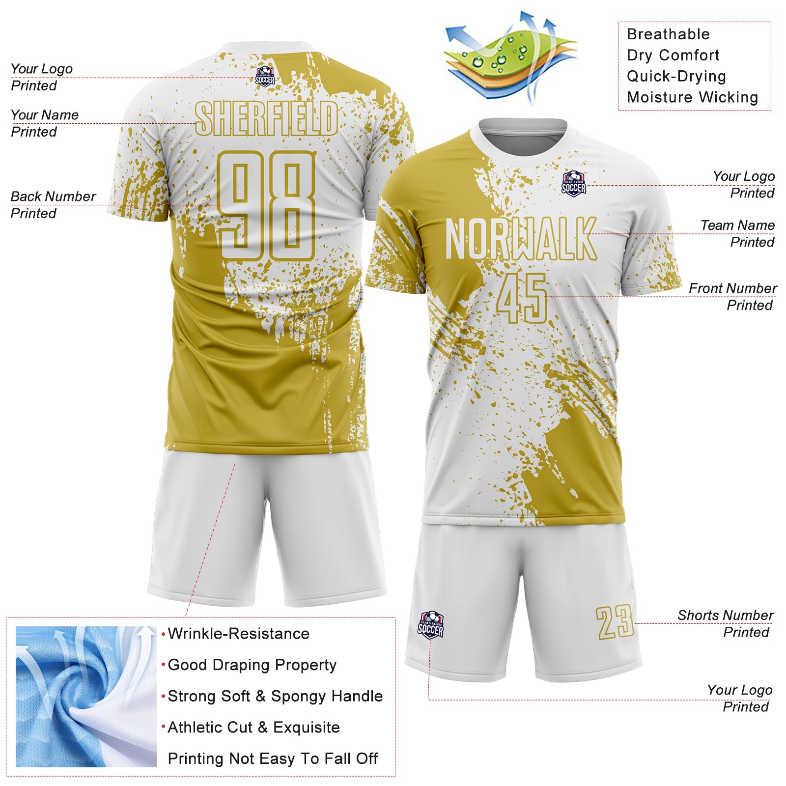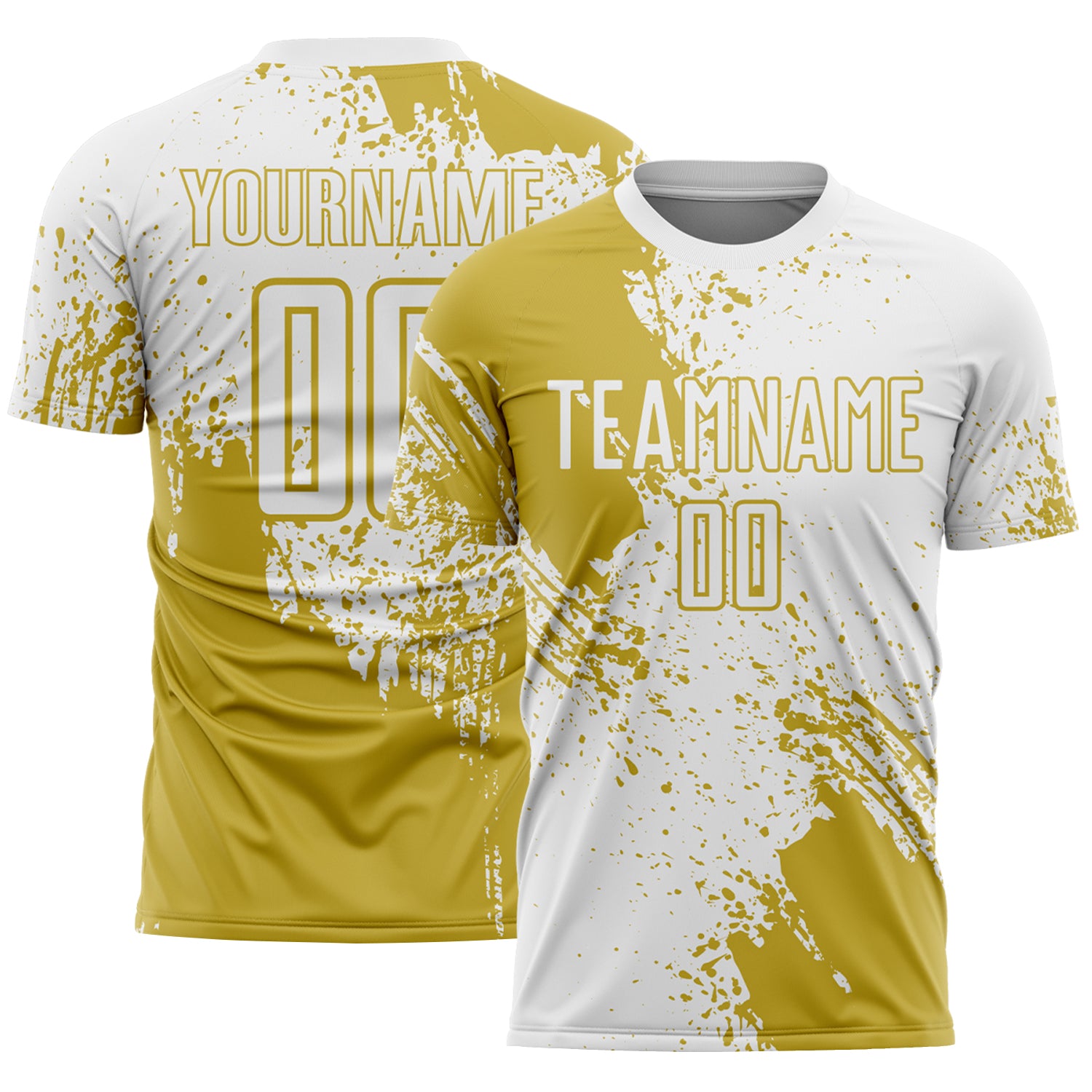 Custom White Old Gold Abstract Brush Stroke Sports Sublimation Soccer Uniform Jersey