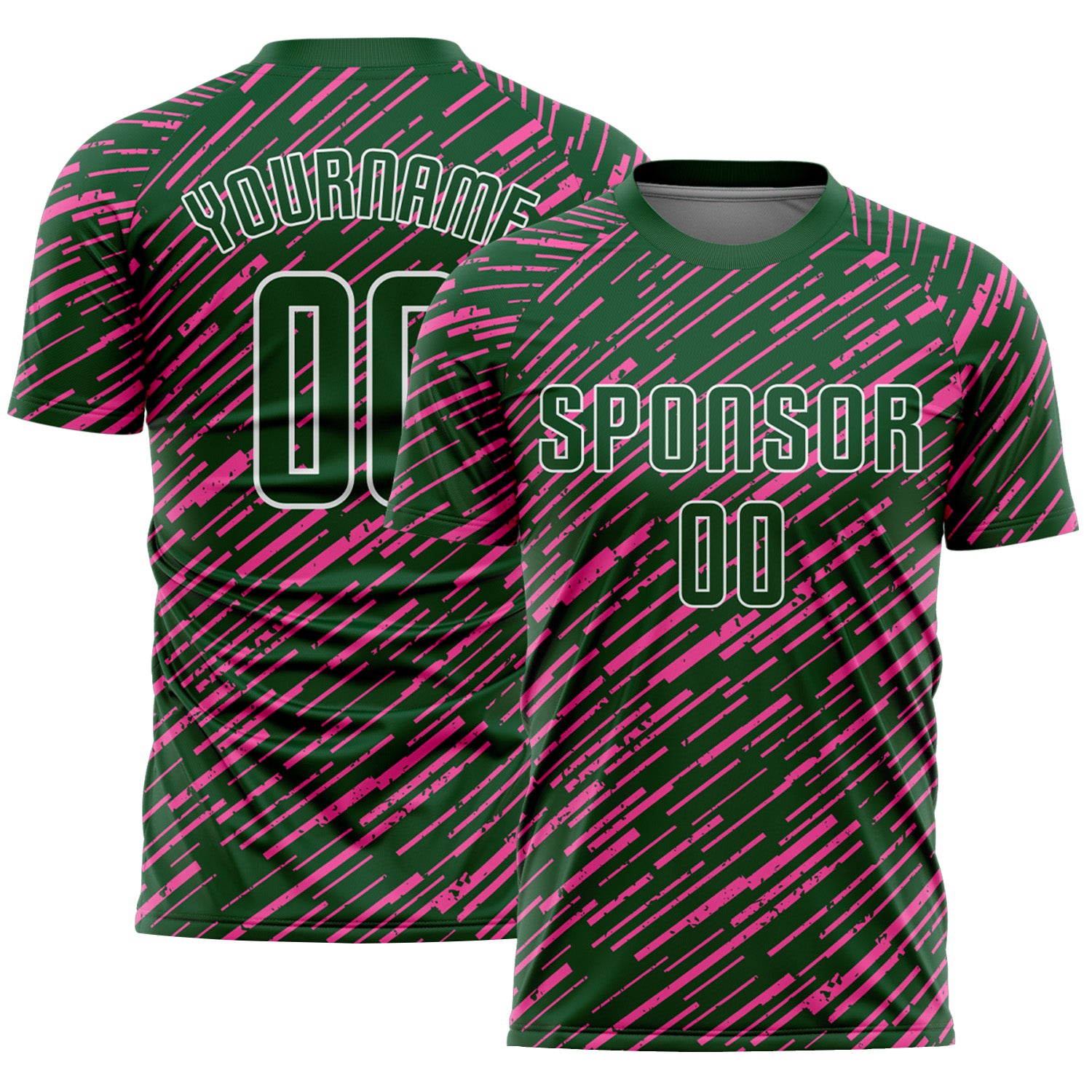 Custom Green Pink-White Line Sports Sublimation Soccer Uniform Jersey