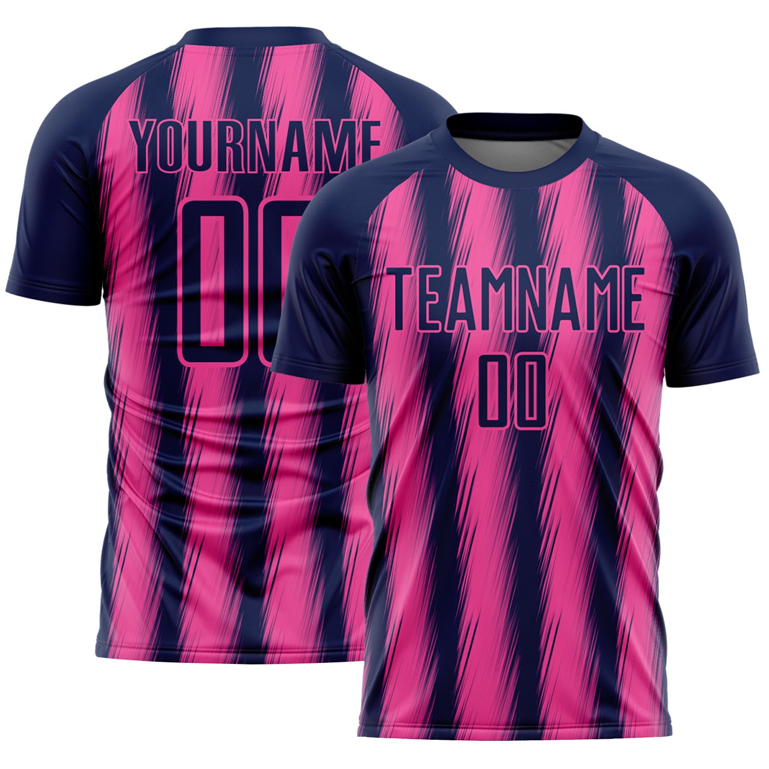 Custom Navy Pink Vertical Brush Stroke Stripes Sublimation Soccer Uniform Jersey