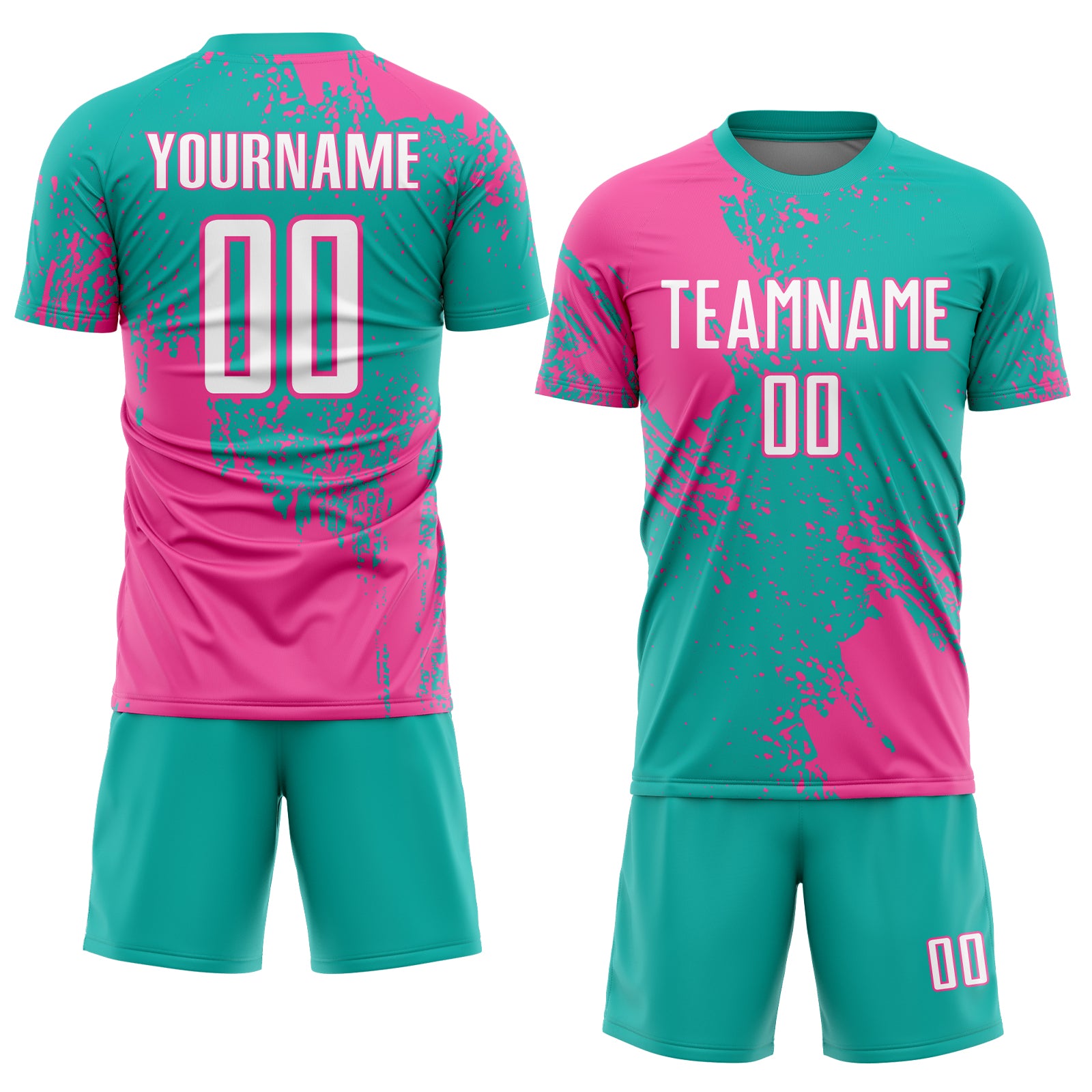 Custom Aqua White-Pink Abstract Brush Stroke Sports Sublimation Soccer Uniform Jersey