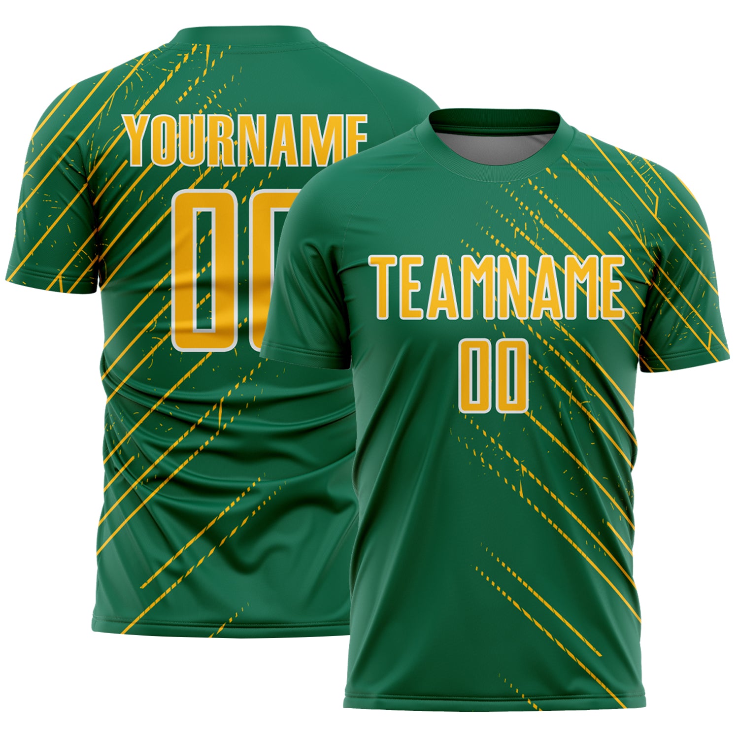 Custom Kelly Green Gold-White Lines Sports Sublimation Soccer Uniform Jersey