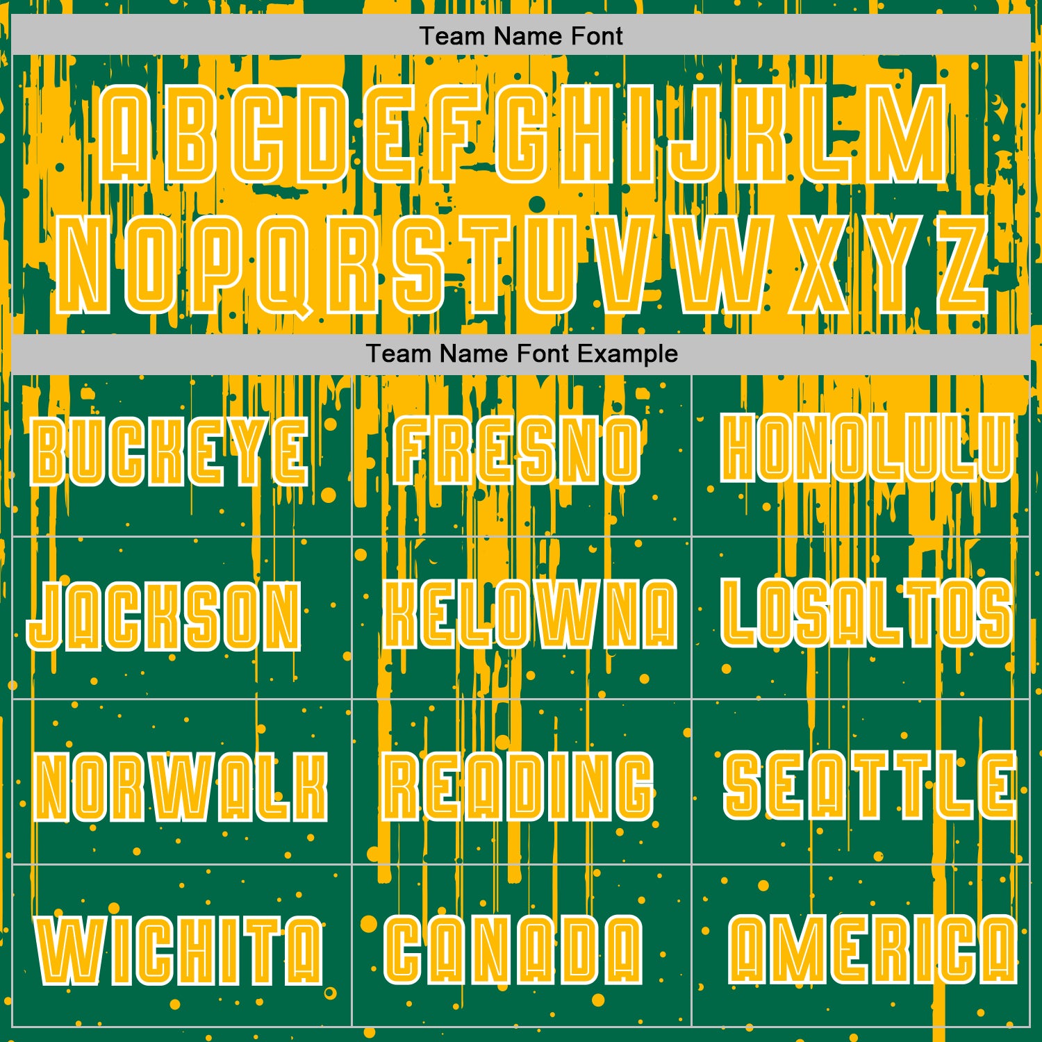 Custom Kelly Green Gold-White Dripping Splatte Pattern Sports Sublimation Soccer Uniform Jersey