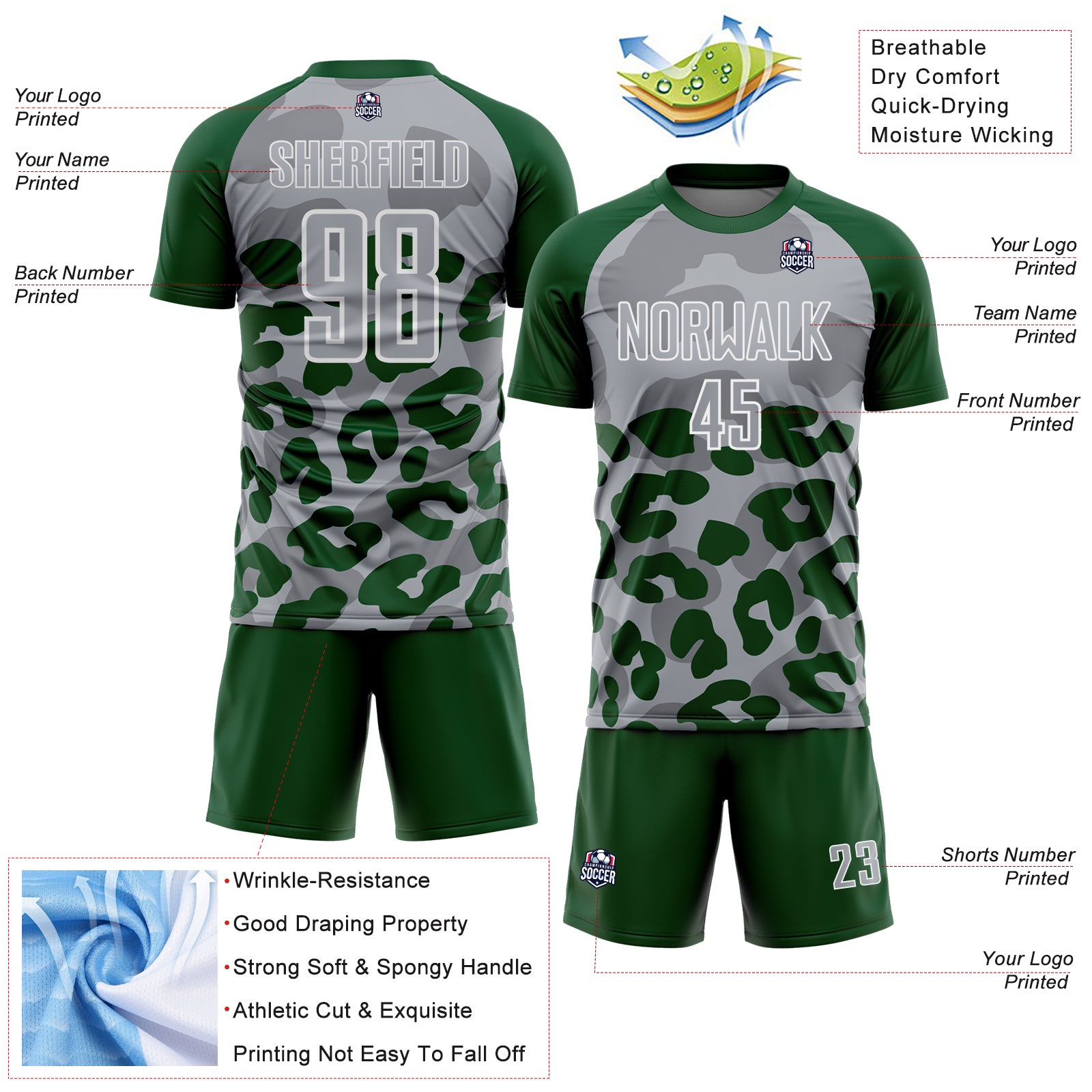 Custom Green Gray-White Animal Leopard Print Sports Sublimation Soccer Uniform Jersey