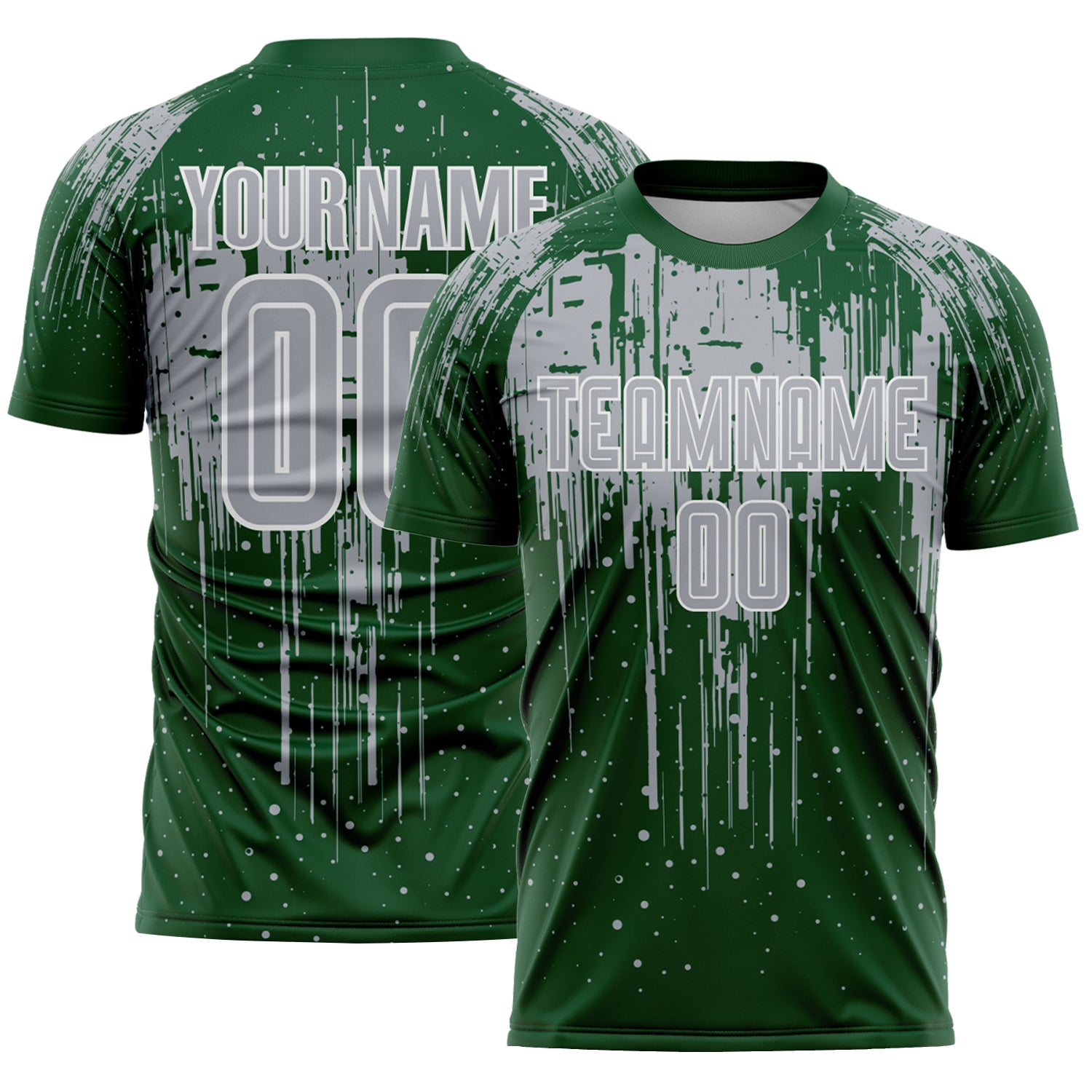 Custom Green Gray-White Dripping Splatte Pattern Sports Sublimation Soccer Uniform Jersey