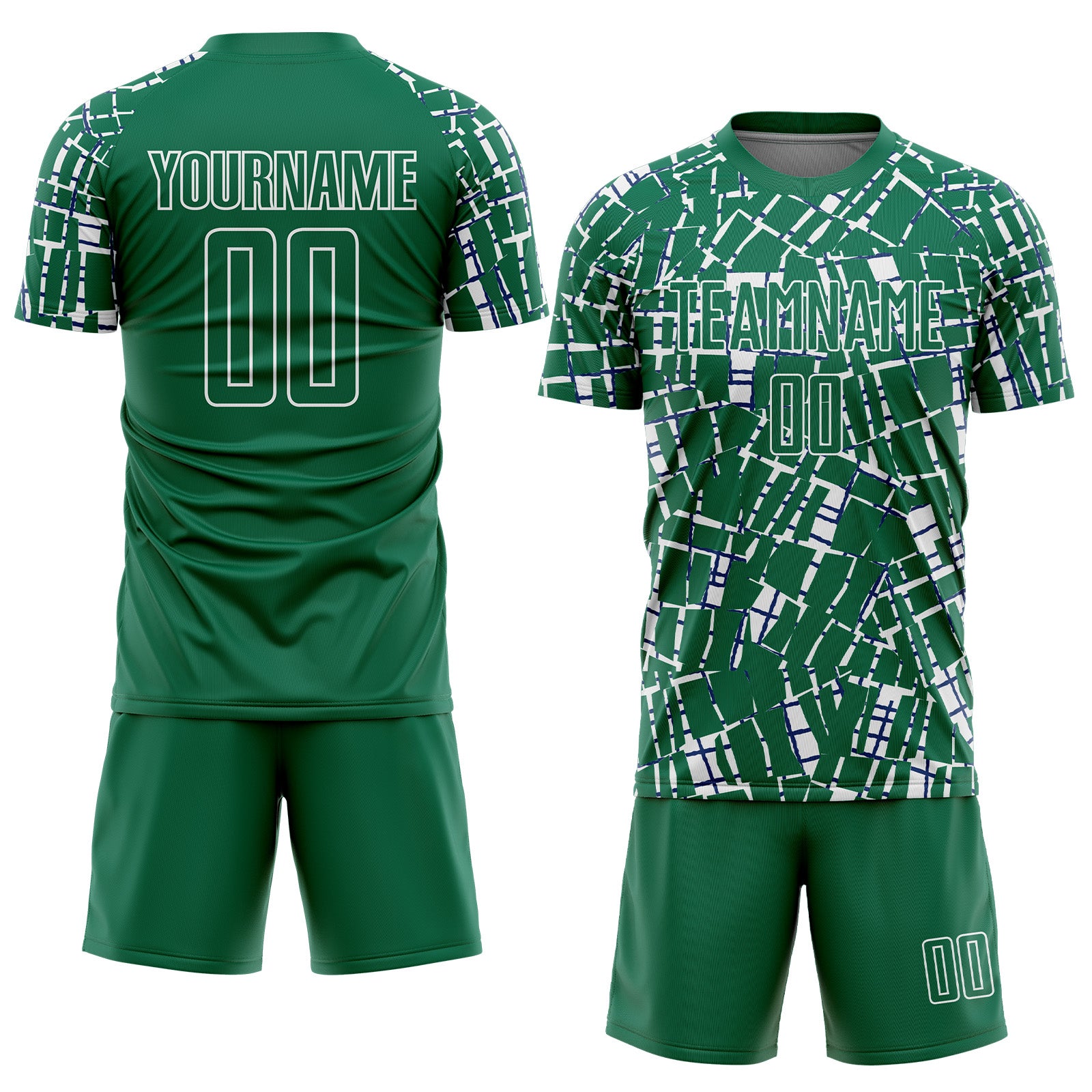 Custom Kelly Green White Abstract Line Sports Sublimation Soccer Uniform Jersey