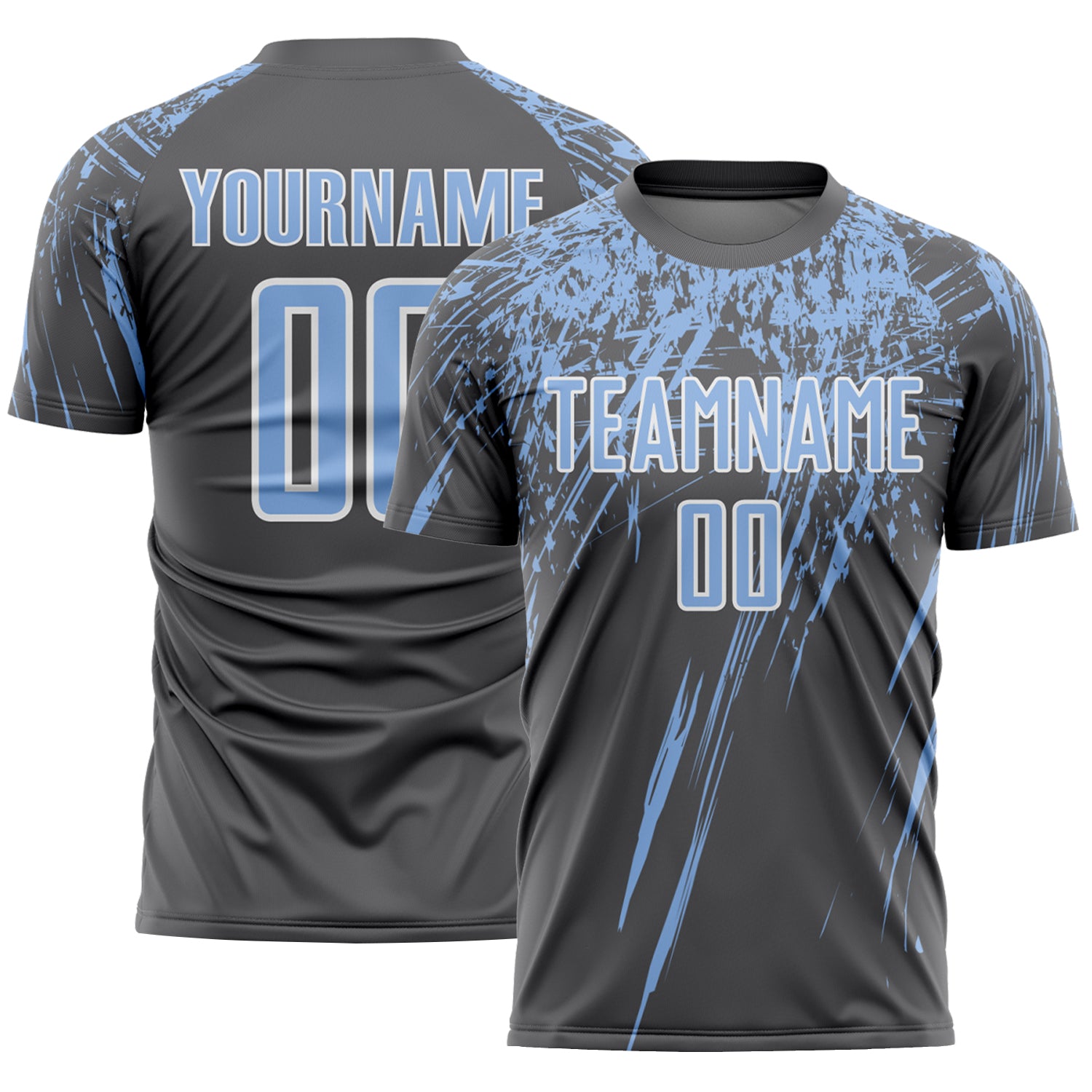 Custom Steel Gray Light Blue-White Splash Sports Sublimation Soccer Uniform Jersey