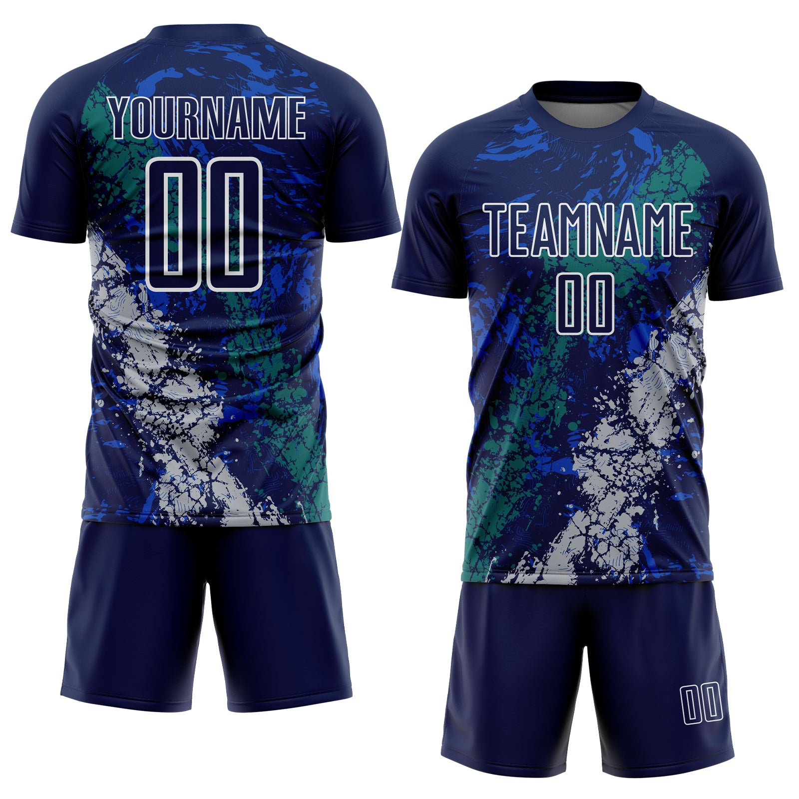Custom Navy White Teal-Gray Dripping Splatter Cracked Texture Sublimation Soccer Uniform Jersey