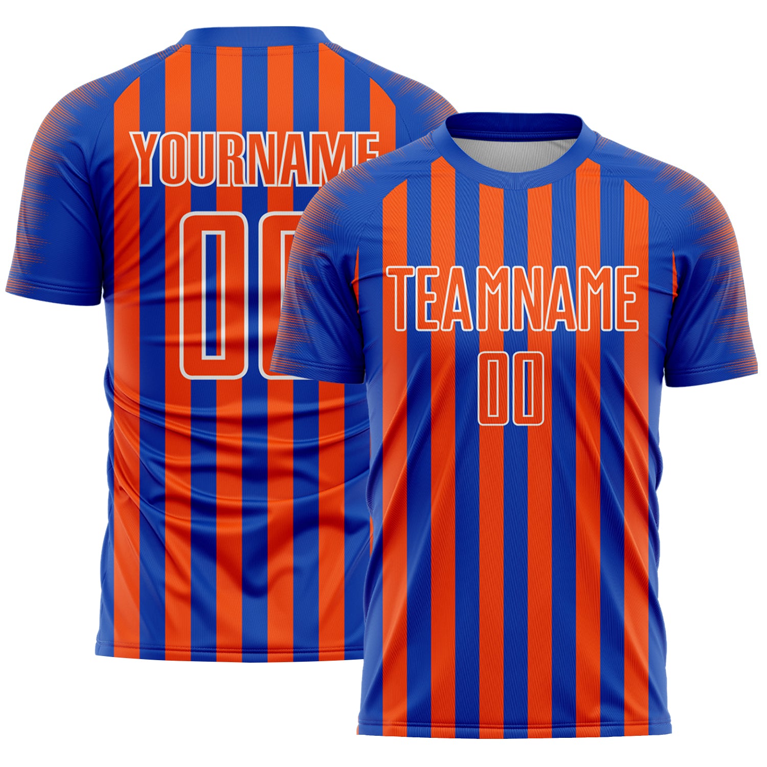 Custom Thunder Blue Orange-White Stripe Sports Sublimation Soccer Uniform Jersey
