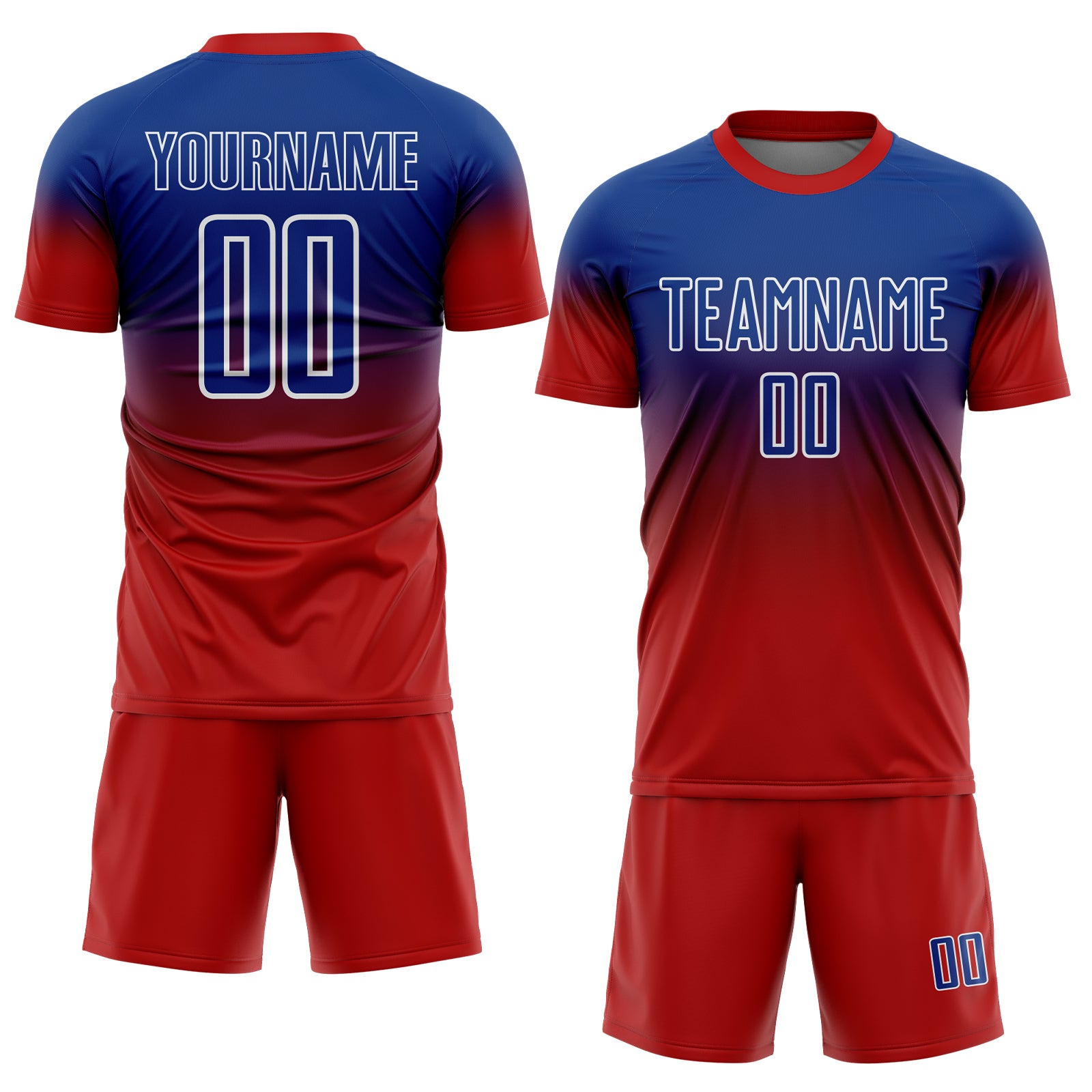Custom Royal White-Red Fade Fashion Sublimation Soccer Uniform Jersey