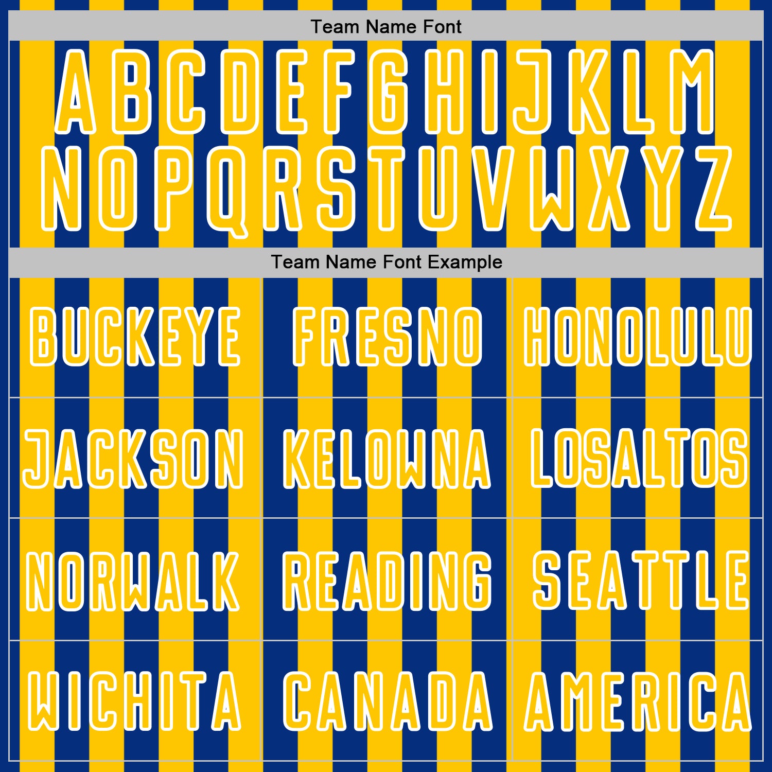 Custom Royal Yellow-White Stripe Sports Sublimation Soccer Uniform Jersey