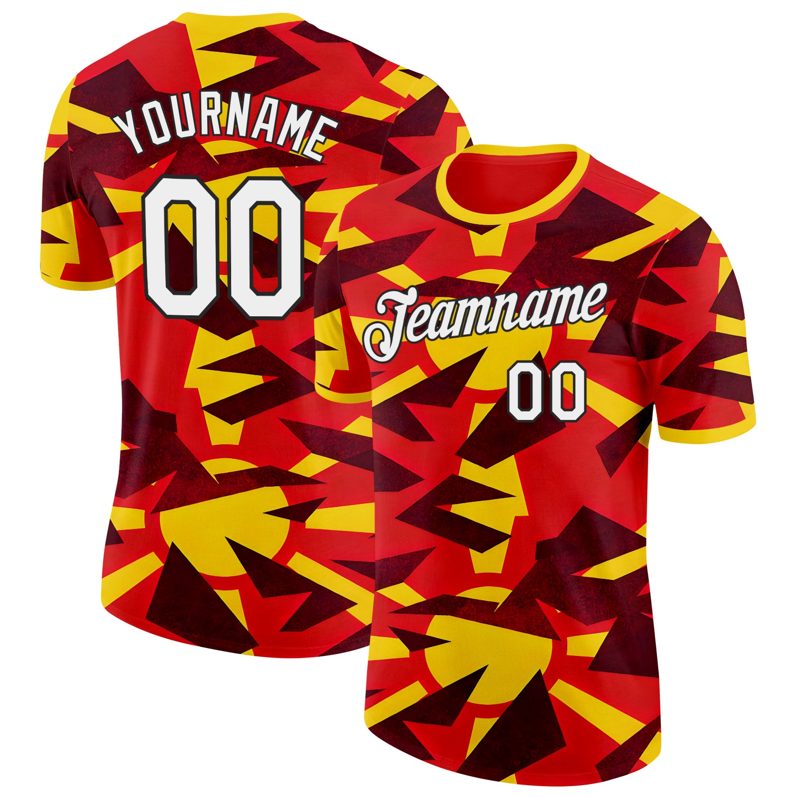 Custom Red White Black-Yellow North Macedonia Performance T-Shirt