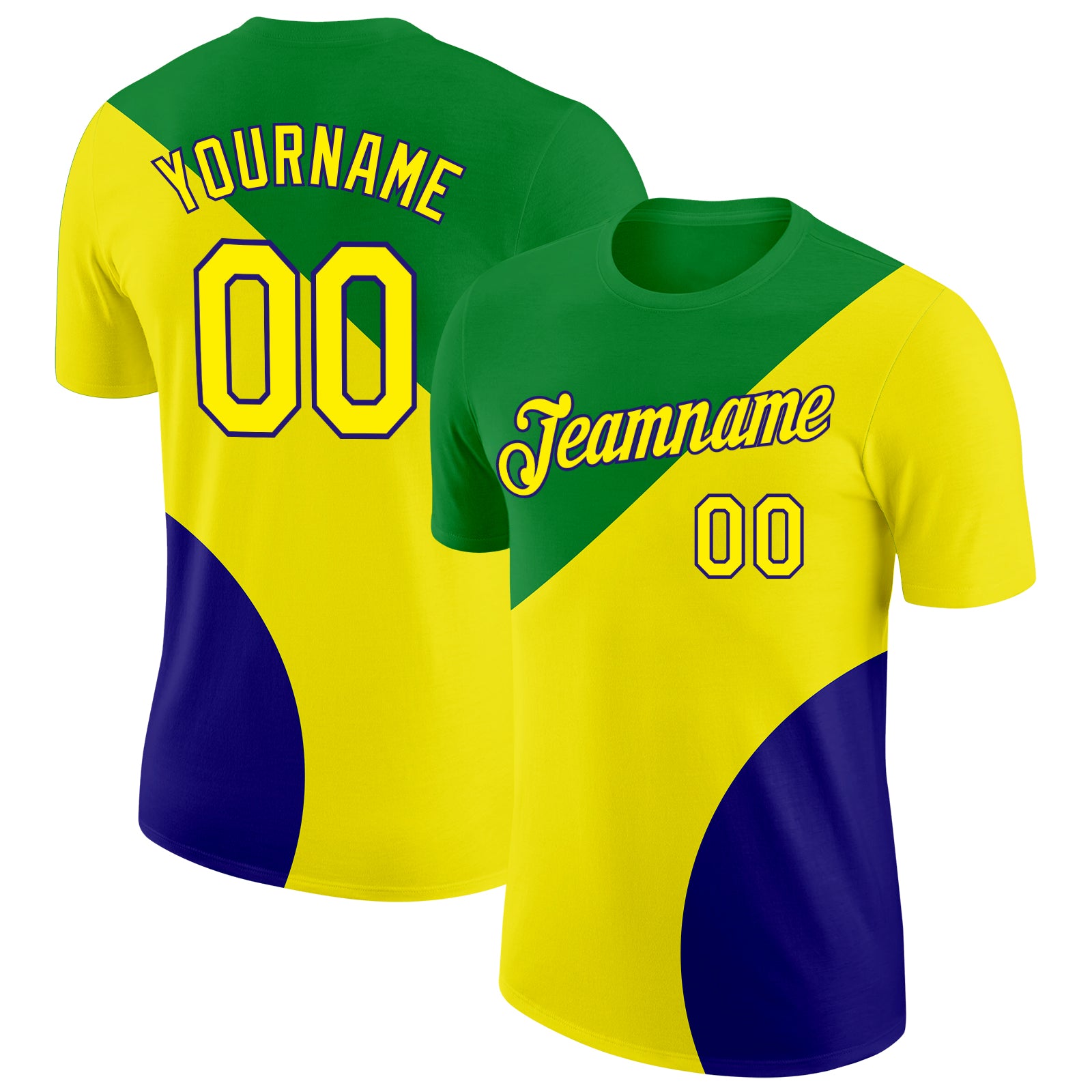 Custom Green Light Yellow-Dark Purple Brazil Color Blocks Performance T-Shirt