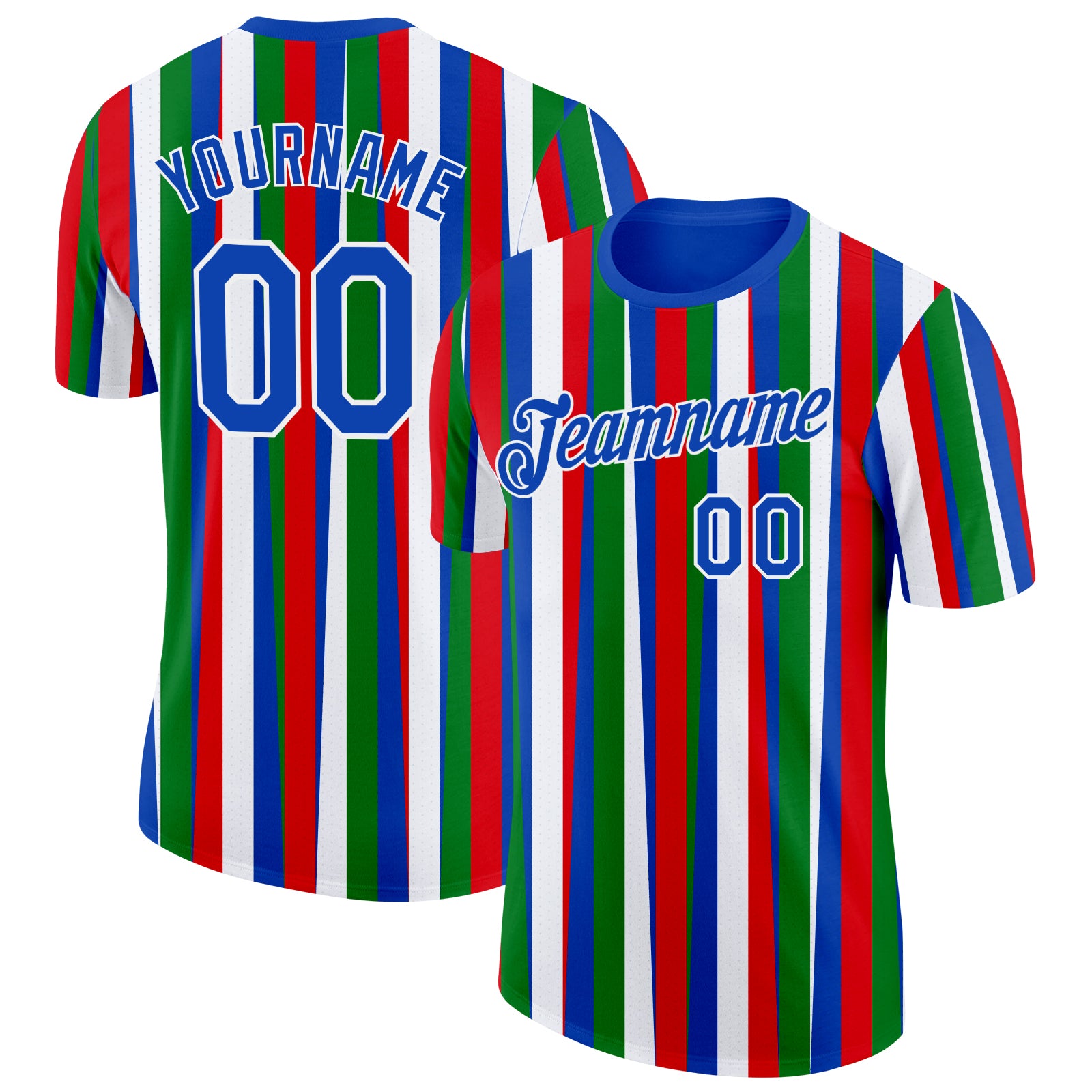 Custom Thunder Blue Green Red-White Italy Line Performance T-Shirt