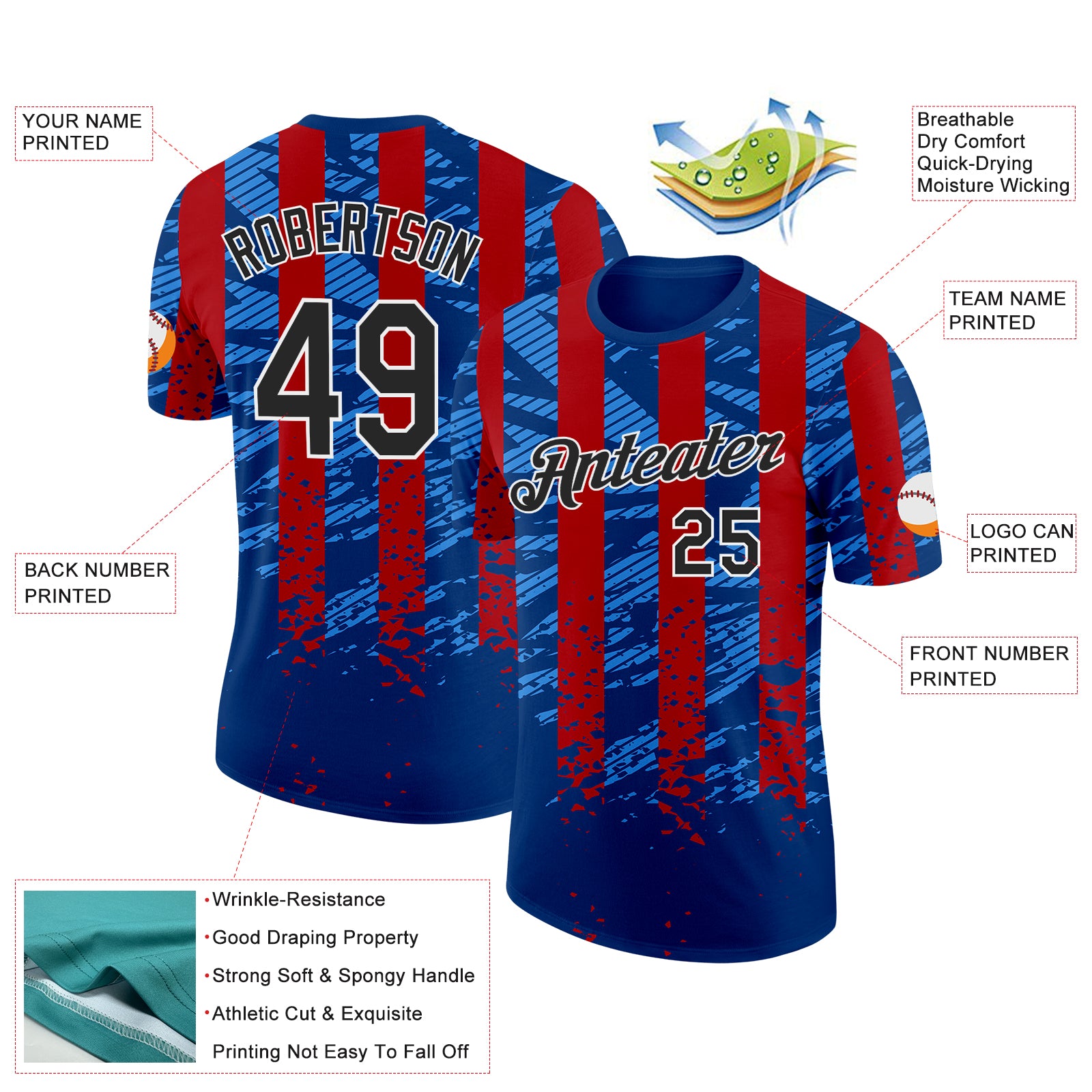 Custom Blue Black Red-White Netherlands Line Splash Performance T-Shirt