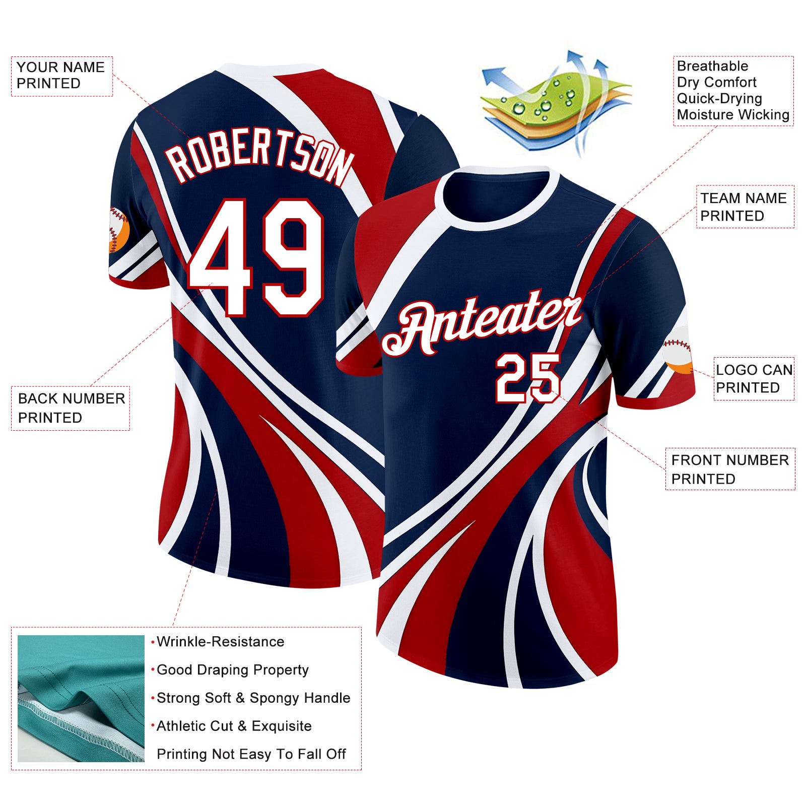 Custom Blue White-Red USA Flag Performance T-Shirt