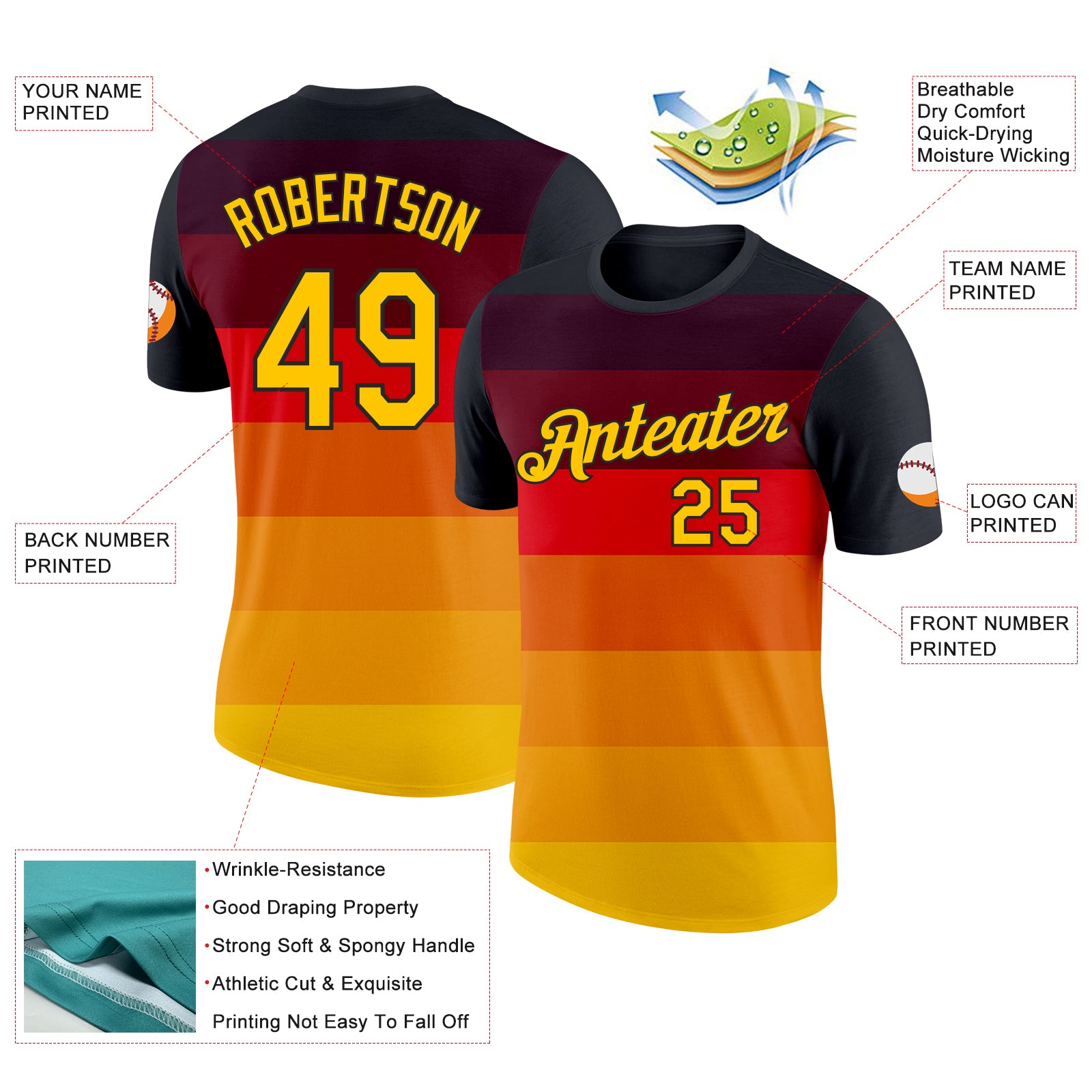 Custom Black Yellow-Red Germany Gradient Stripe Performance T-Shirt