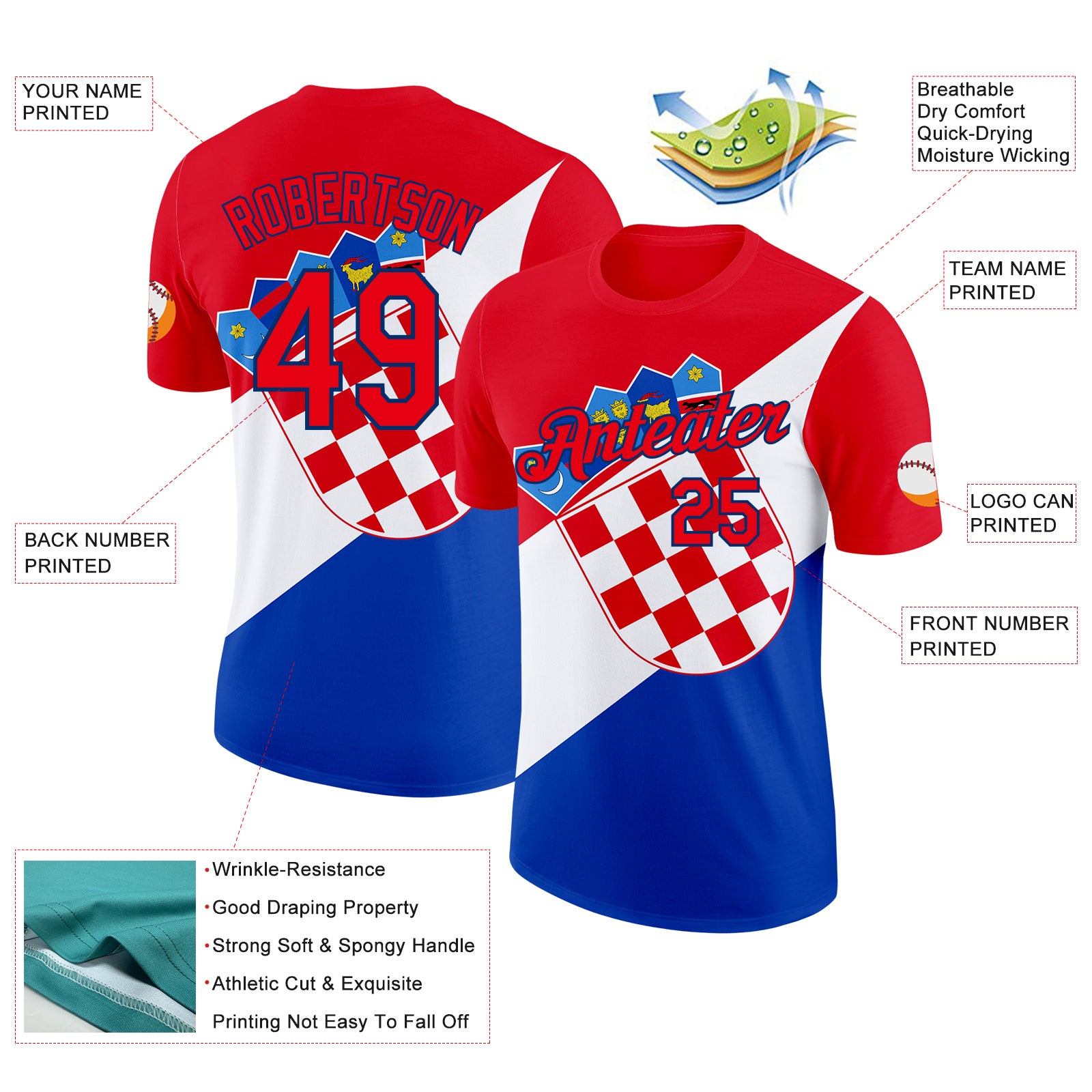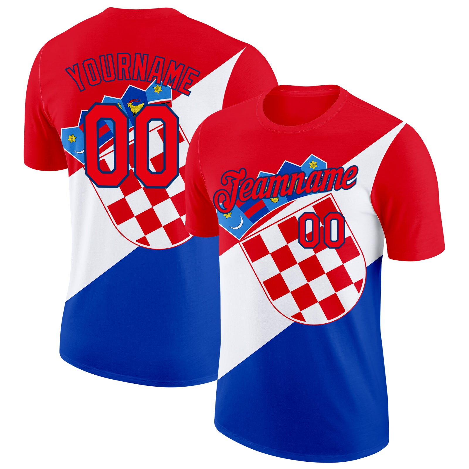 Custom Fire Red US Navy Blue White-Blue Croatia Flag Performance T-Shirt