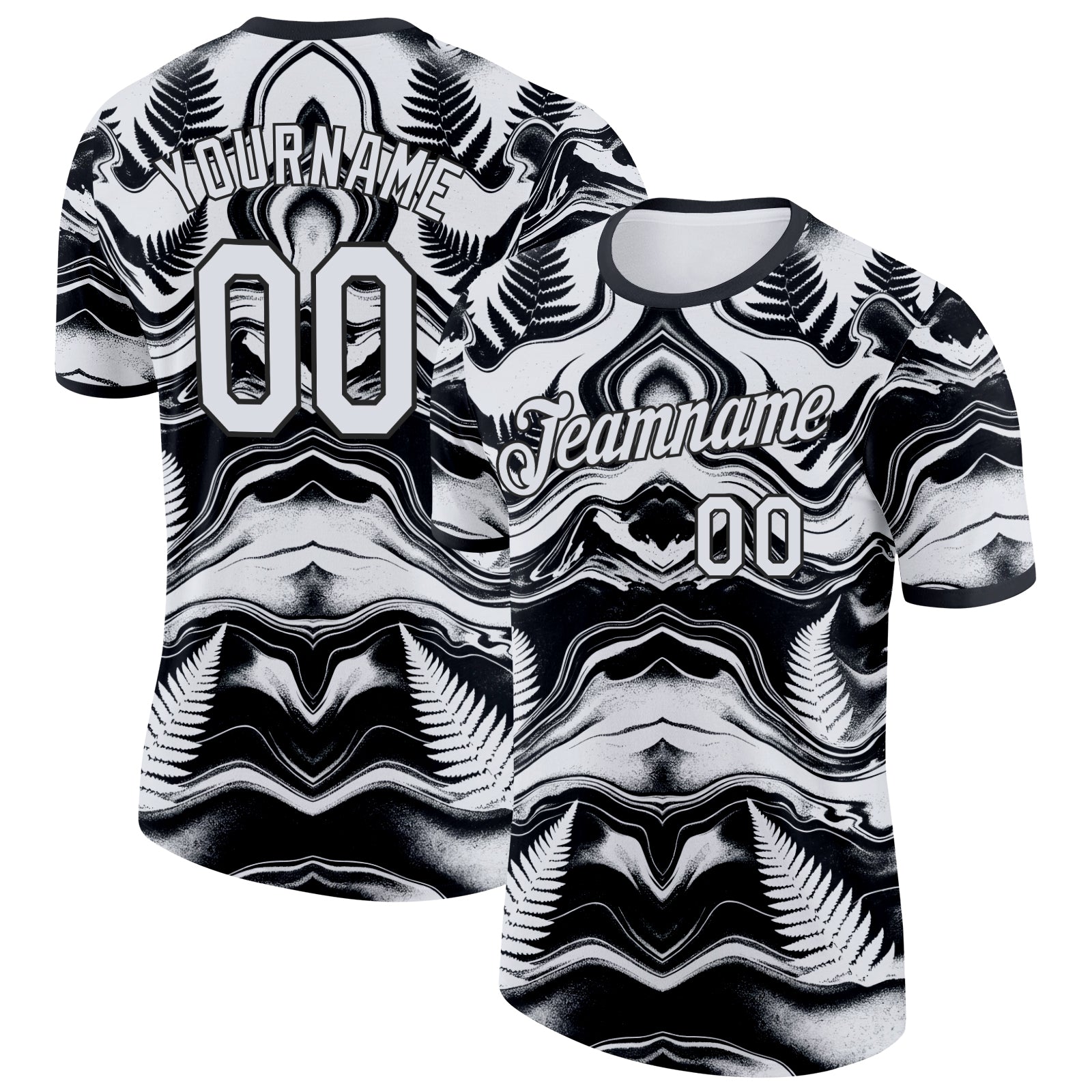 Custom Black White New Zealand Silver Fern Performance T-Shirt